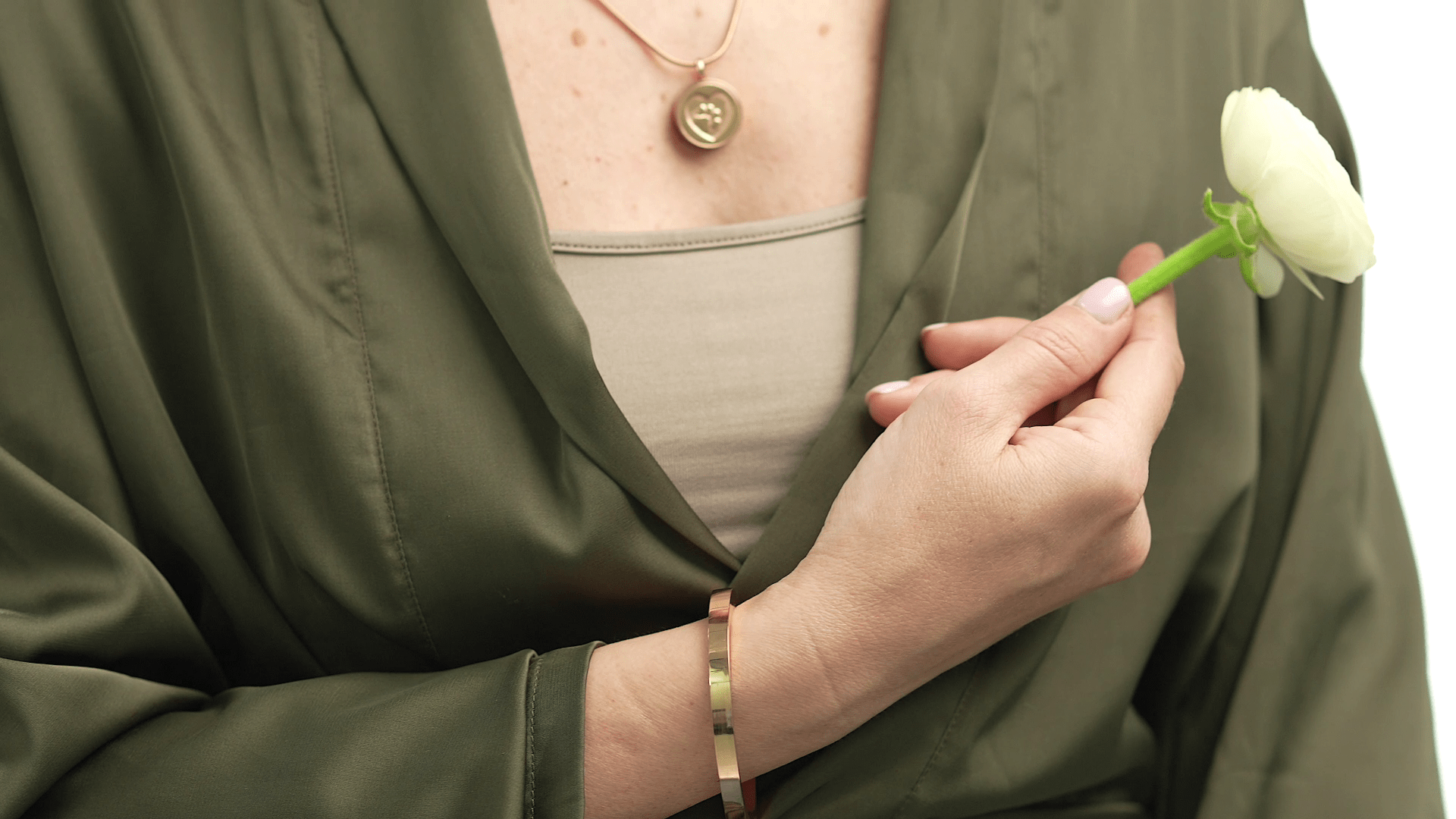 Dotato di una chiusura a vite filettata, sicura e facile da utilizzare, il bracciale offre serenità e comfort a ogni utilizzo. La sua forma essenziale e sofisticata riflette forza interiore e calma esteriore—proprio come l’amore che rappresenta.
