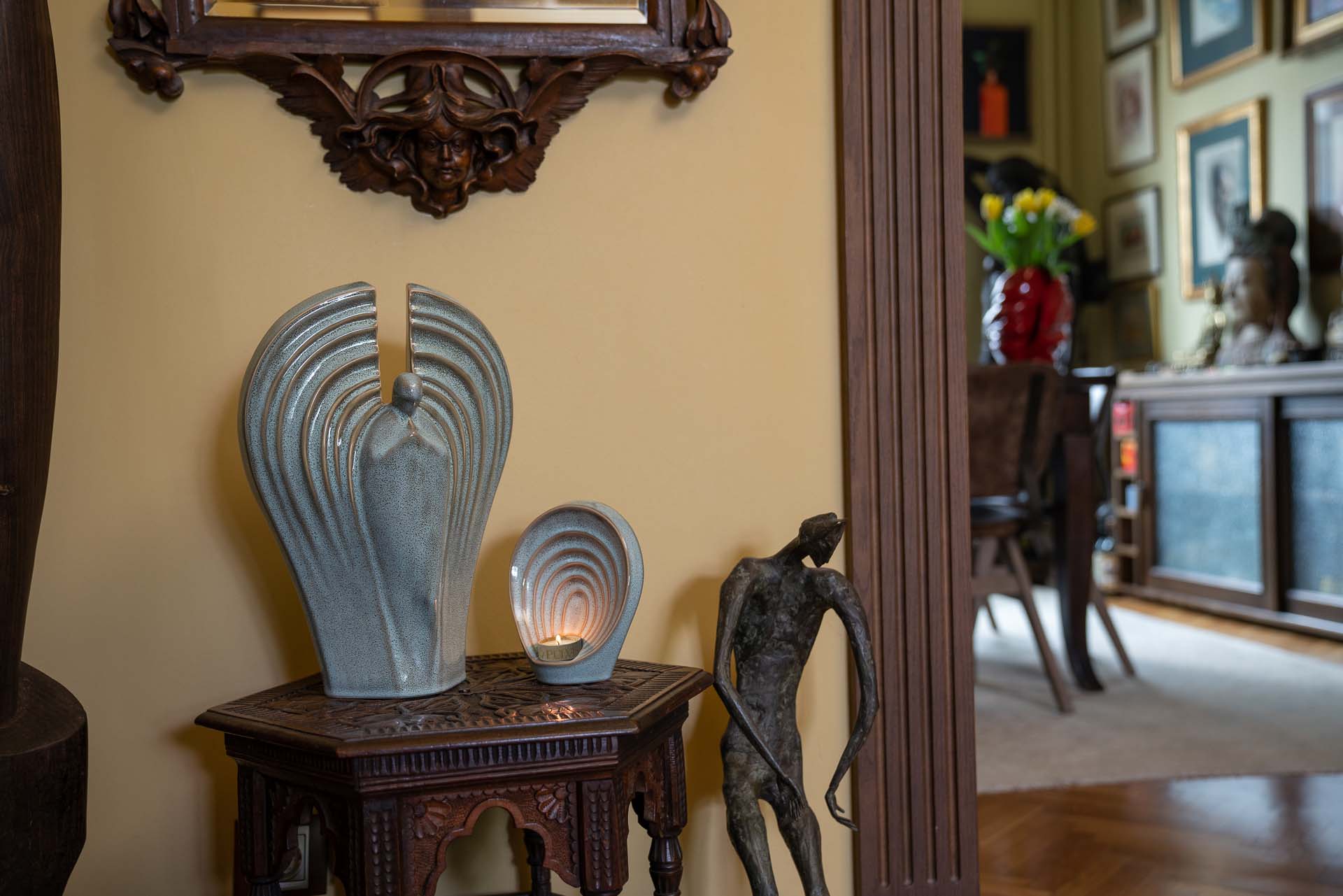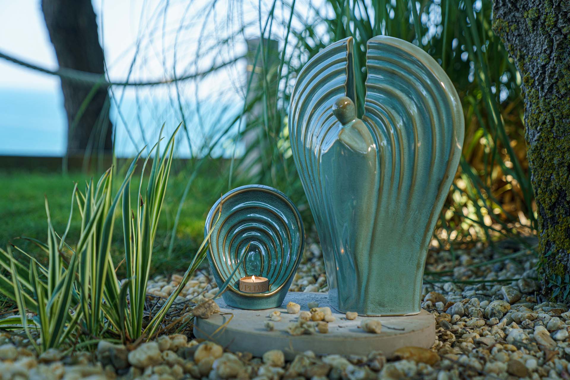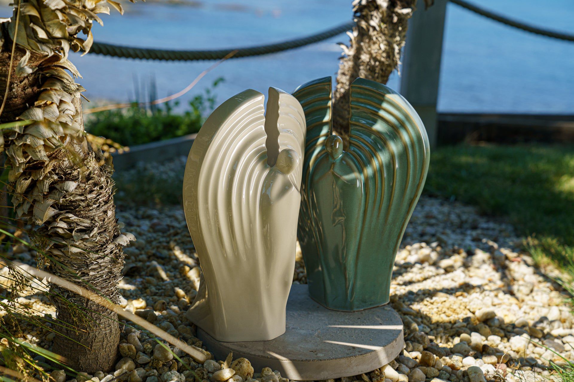Questa urna artistica per ceneri simboleggia purezza, umiltà e pace divina, valori profondamente associati agli angeli custodi. La “Guardian”, con le sue linee delicate e il design riflessivo, è un memoriale davvero straordinario, adatto a qualsiasi ambiente interno. Crediamo che questa urna premium sia degna di custodire le ceneri della persona amata e speriamo di potervi essere di aiuto in questo momento così doloroso e difficile.