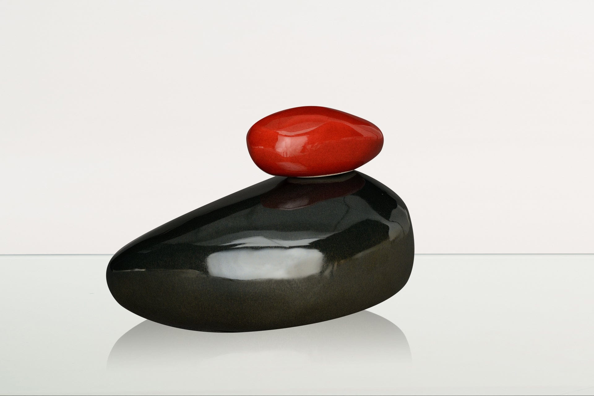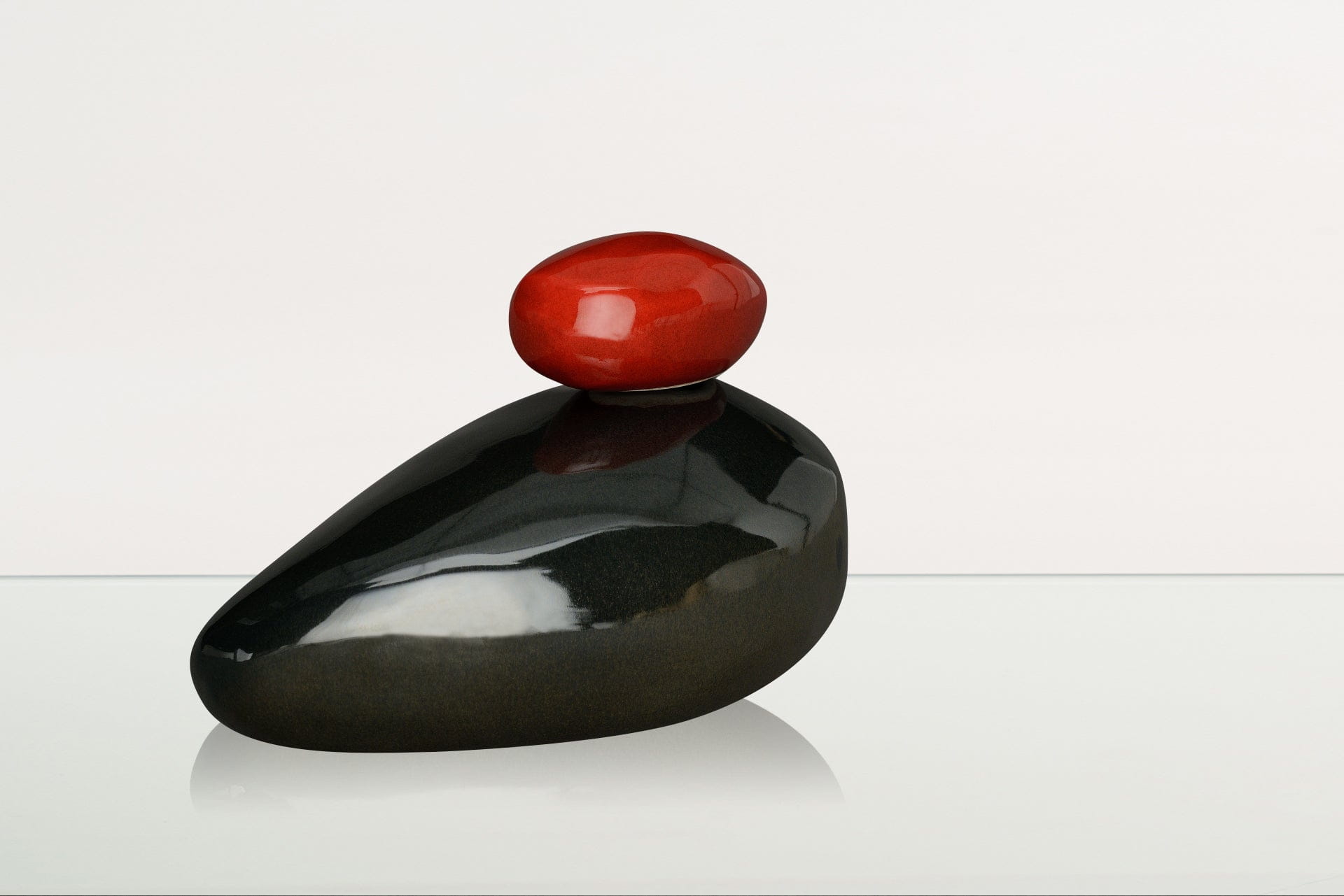 Urna cineraria artigianale per ceneri "Pietra" - Urna grande | Nero lucido | Ceramica