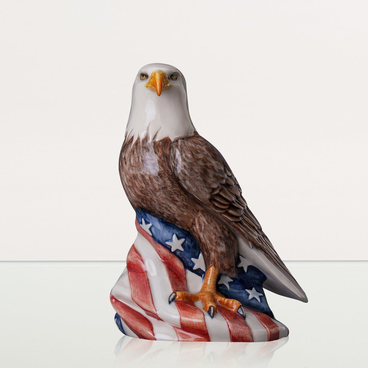 Questa straordinaria opera d’arte, chiamata Aquilae (Aquila in latino), rappresenta l’omaggio definitivo a una vita onorevole. Combinando due simboli sacri – l’aquila americana che protegge delicatamente la bandiera – questa urna commemorativa patriottica, realizzata a mano, è la scelta più raffinata per onorare la vita di un militare o di una militare.