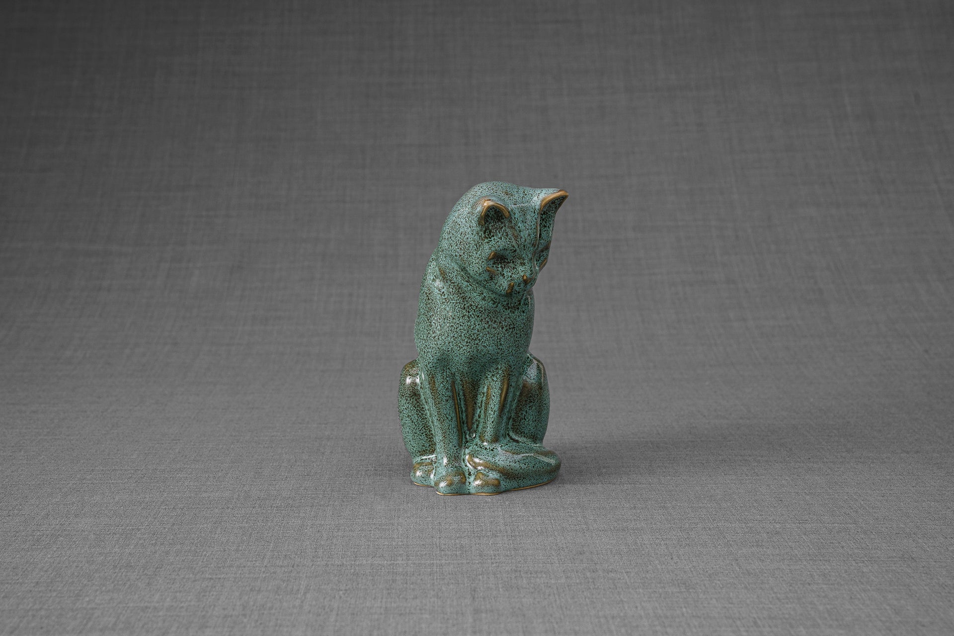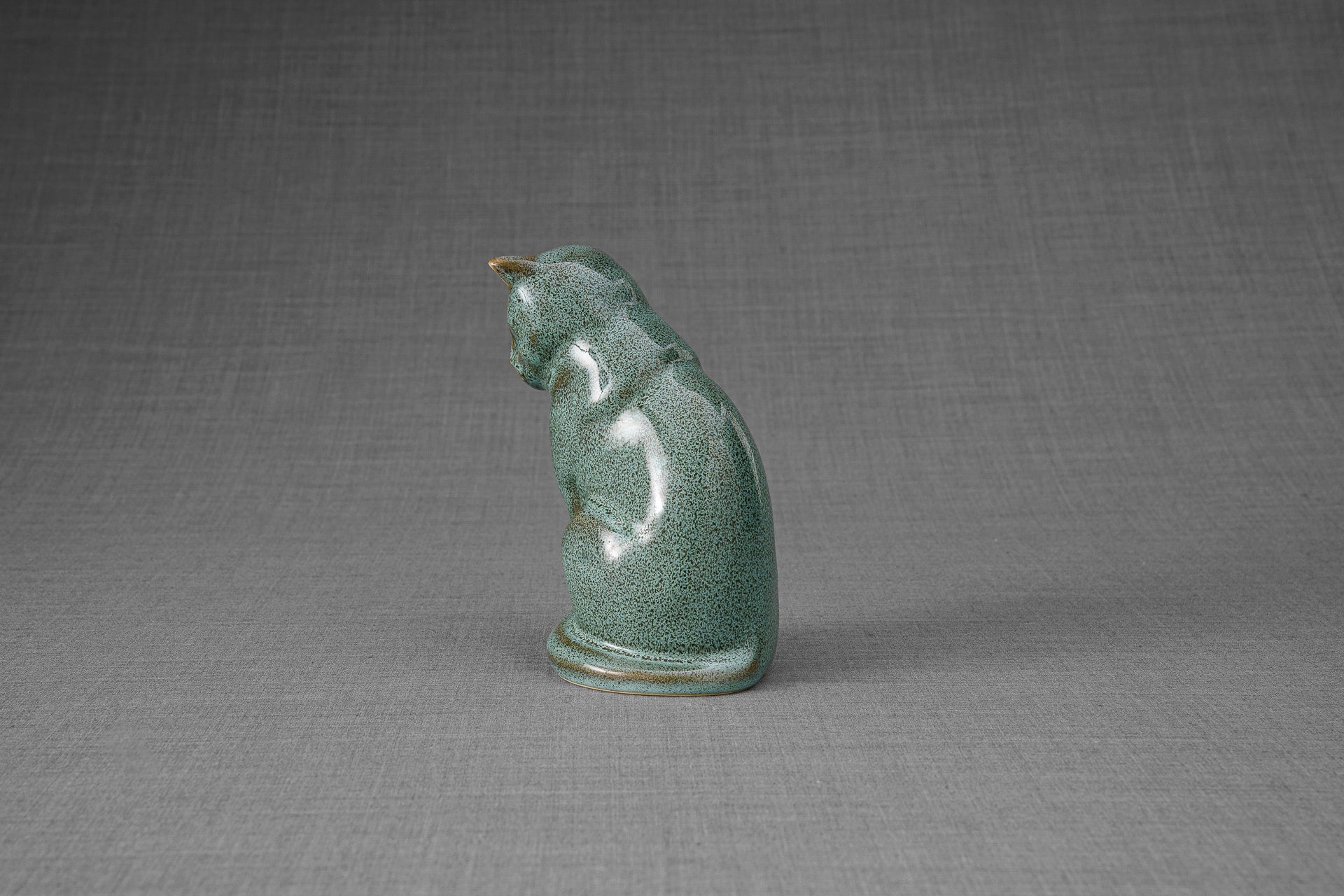 Mini Urna per Ceneri Animali Neko - Verde Olio Melange | Ceramica | Artigianale