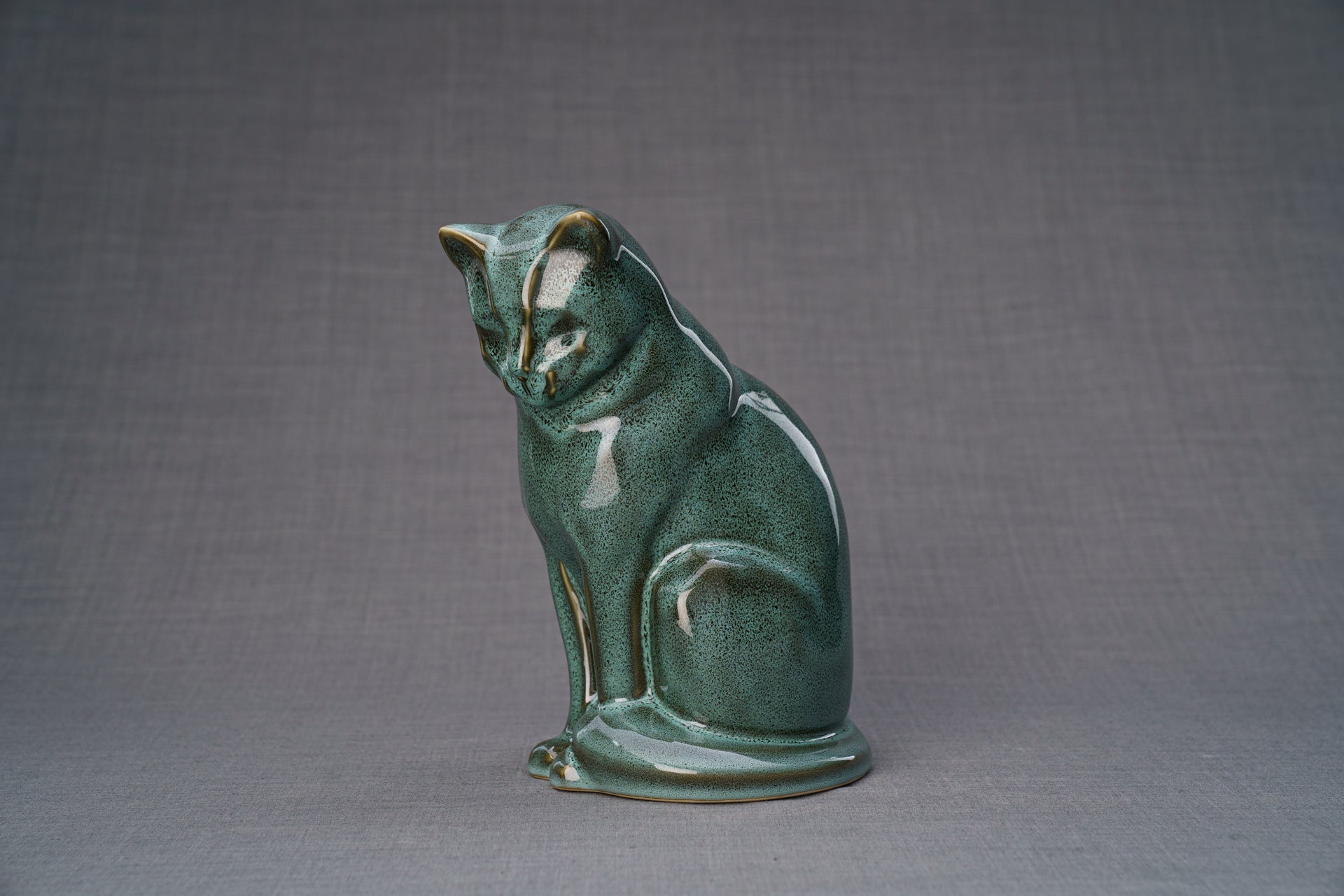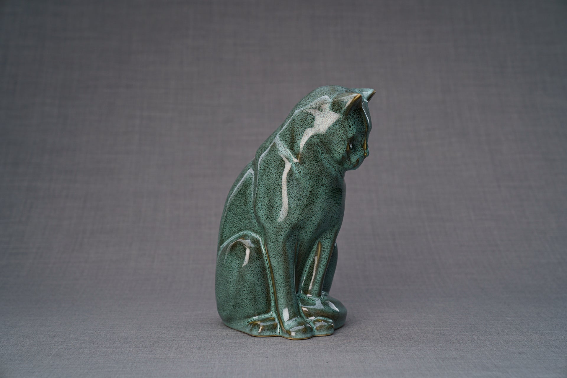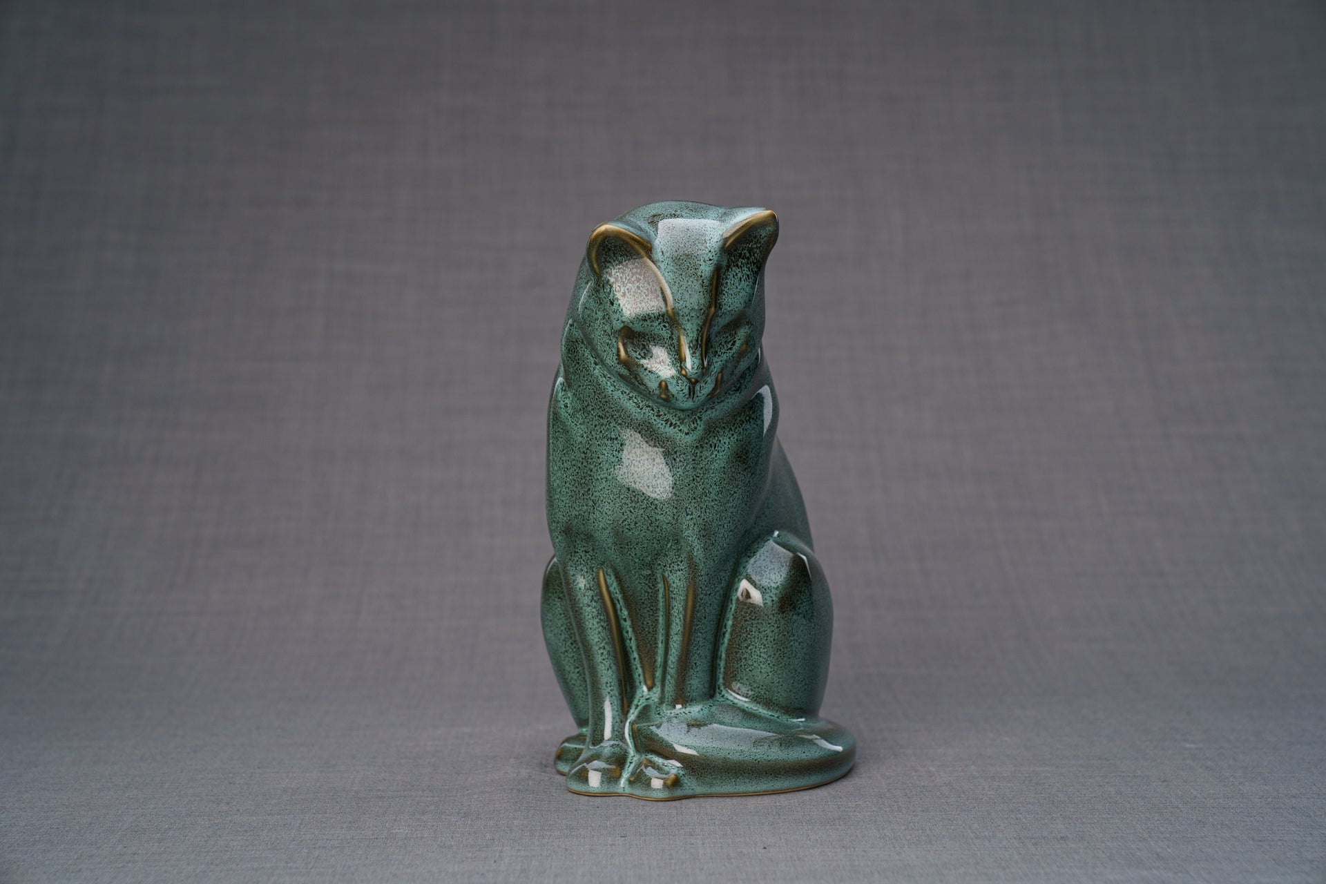 Neko Urna per Ceneri Animali - Verde Olio Melange | Ceramica | Artigianale