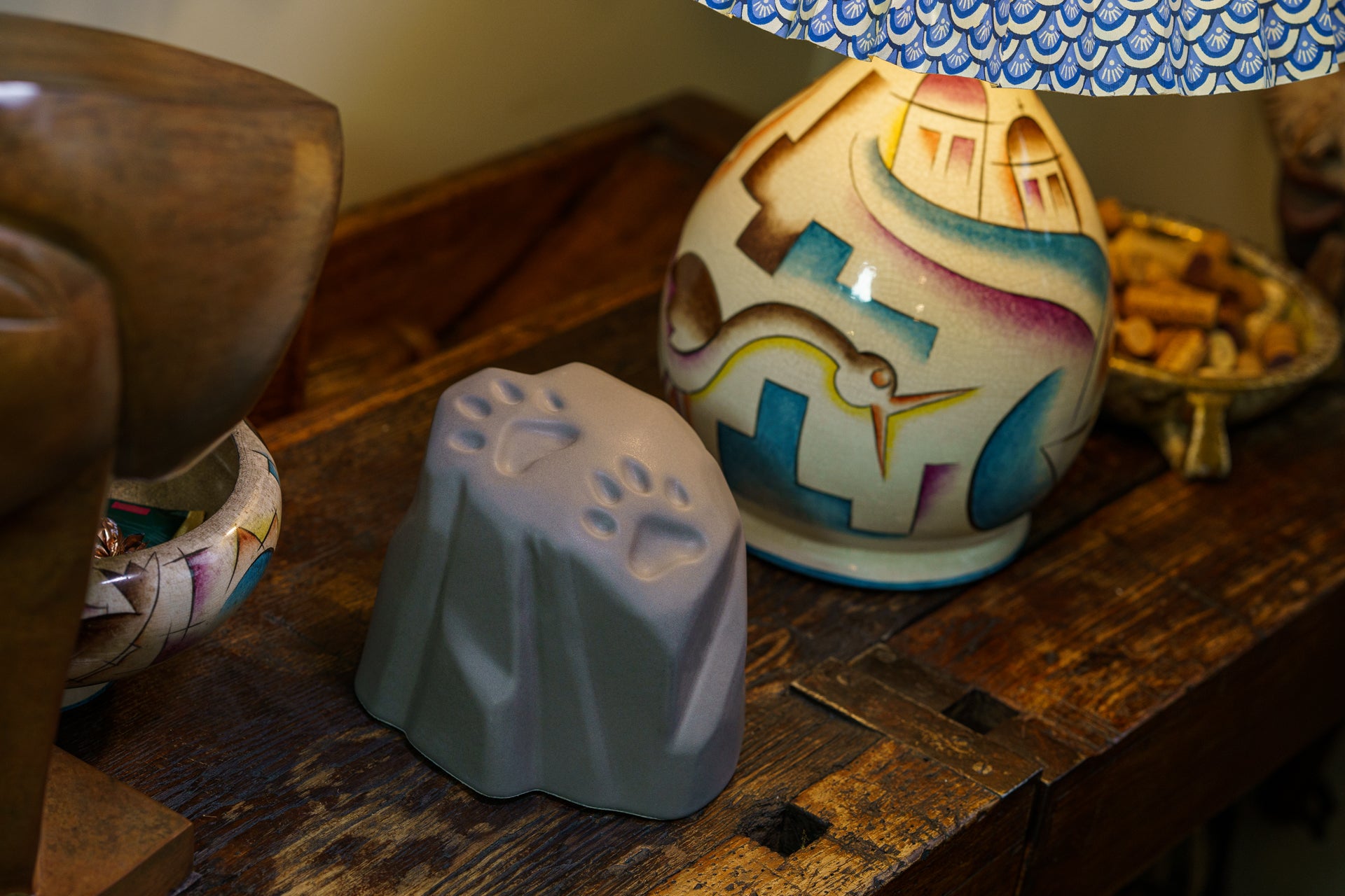 Paw Print Urna per Ceneri Animali - Grigio Opaco | Ceramica | Artigianale