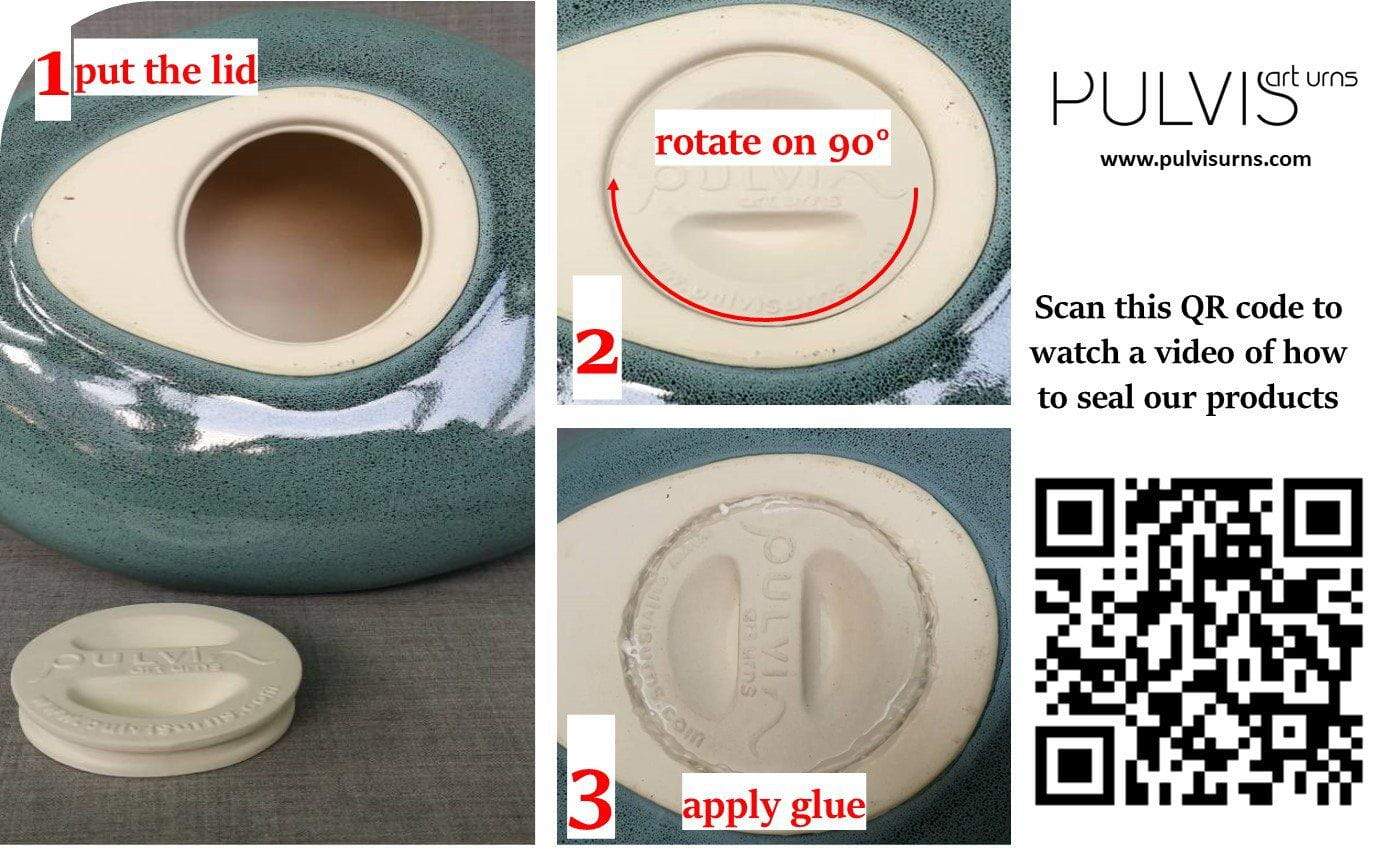 Si consiglia di sigillare le urne grandi con colla adatta a superfici in ceramica per evitare fuoriuscite di ceneri. I coperchi in ceramica non hanno filettature e NON chiudono ermeticamente, il che può causare fuoriuscite se non sigillati.