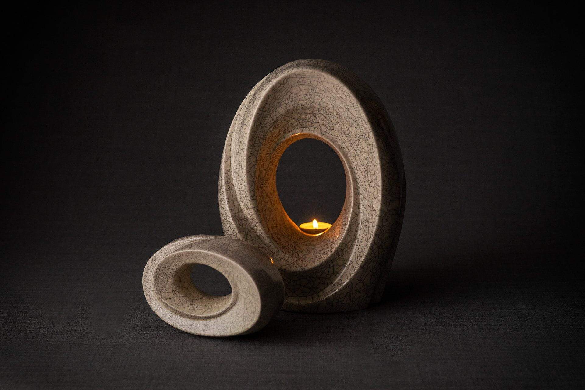 Set di urne artistiche per ceneri “Il Passaggio” – (Urna grande + Urna ricordo)