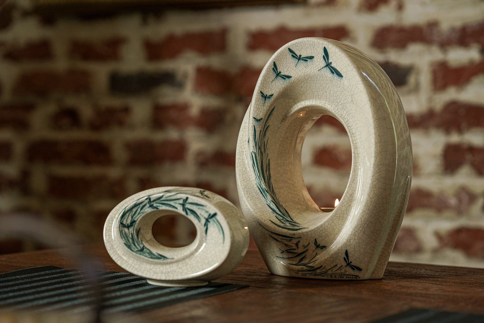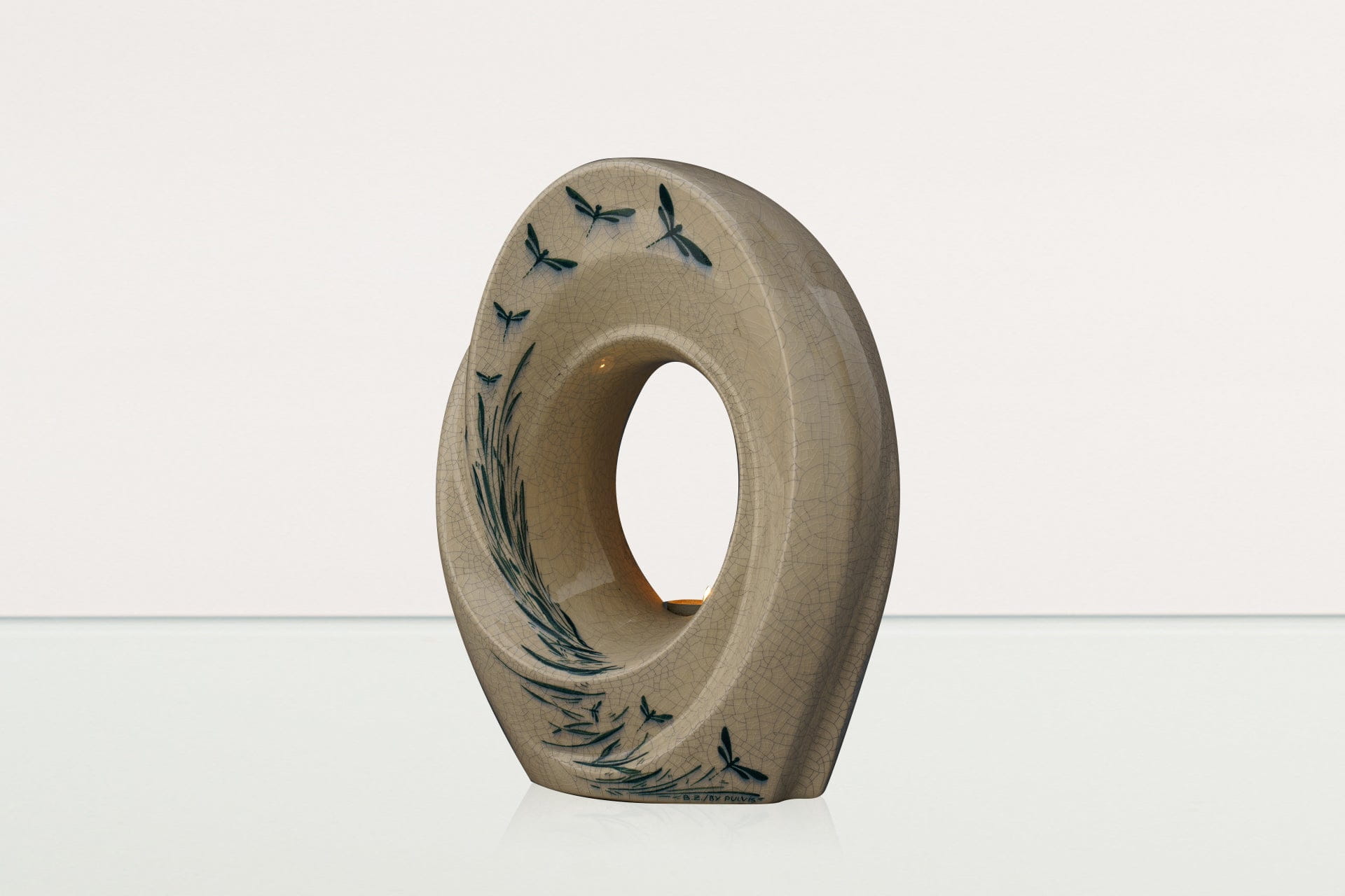 Urna decorata a mano “Il Passaggio – Libellule” – Urna grande | In ceramica