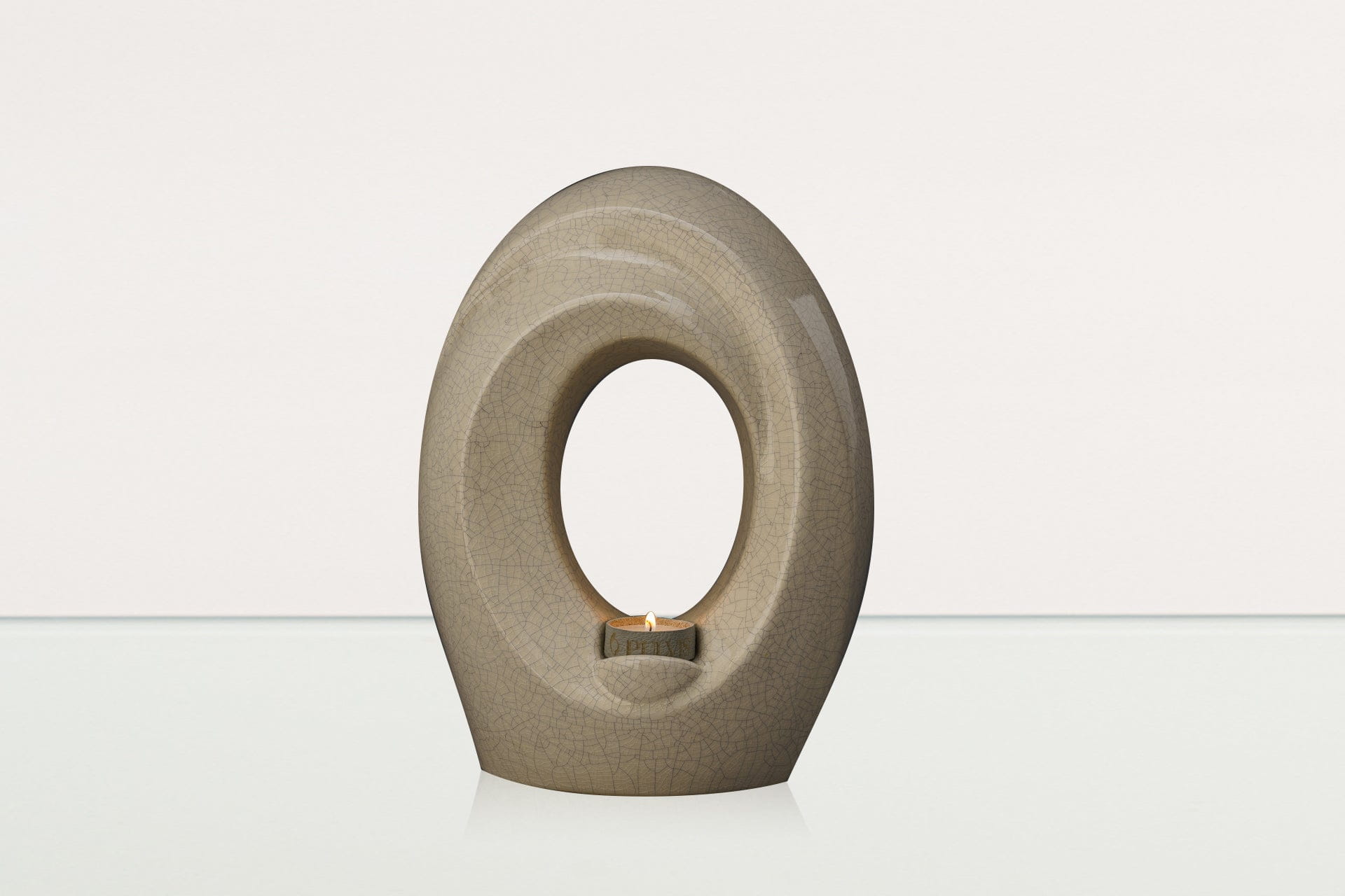 The candle holder allows a memorial candle to be lit in a time of remembrance, making this urn a great addition to any interior. The soft light from the flame of the candle is heavenly reflected on the graceful lines of this full-size urn, which naturally emphasizes its beauty.