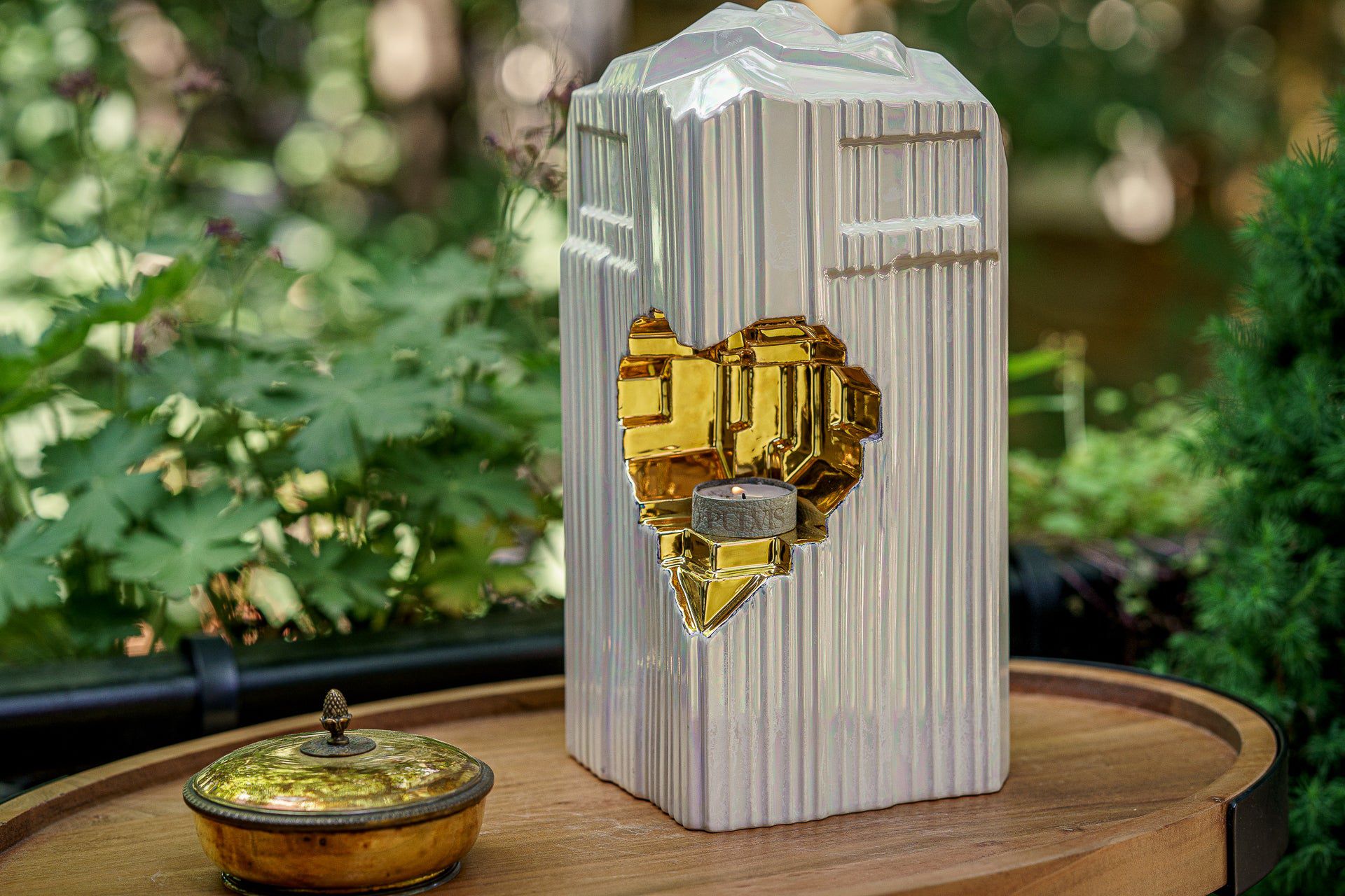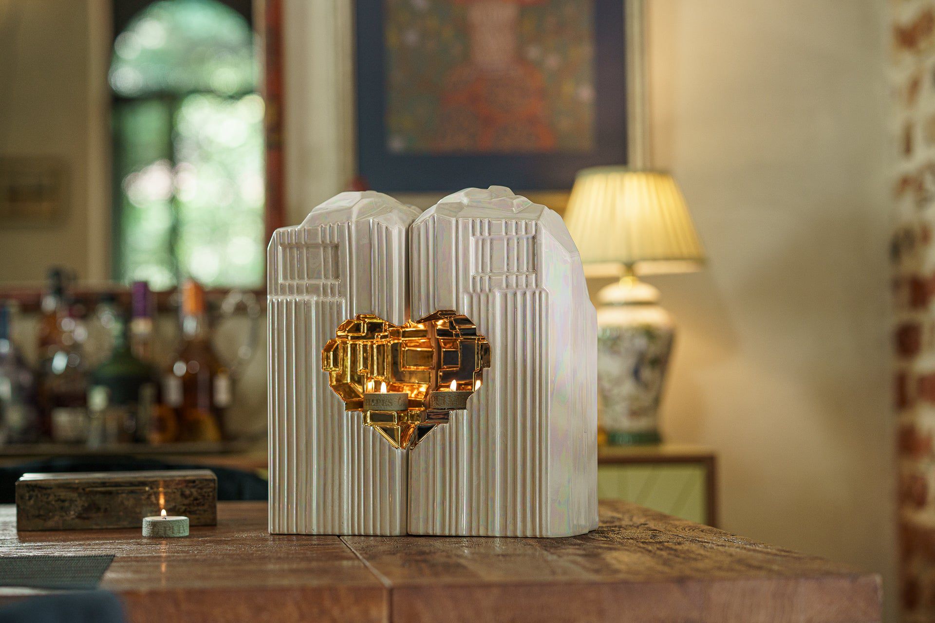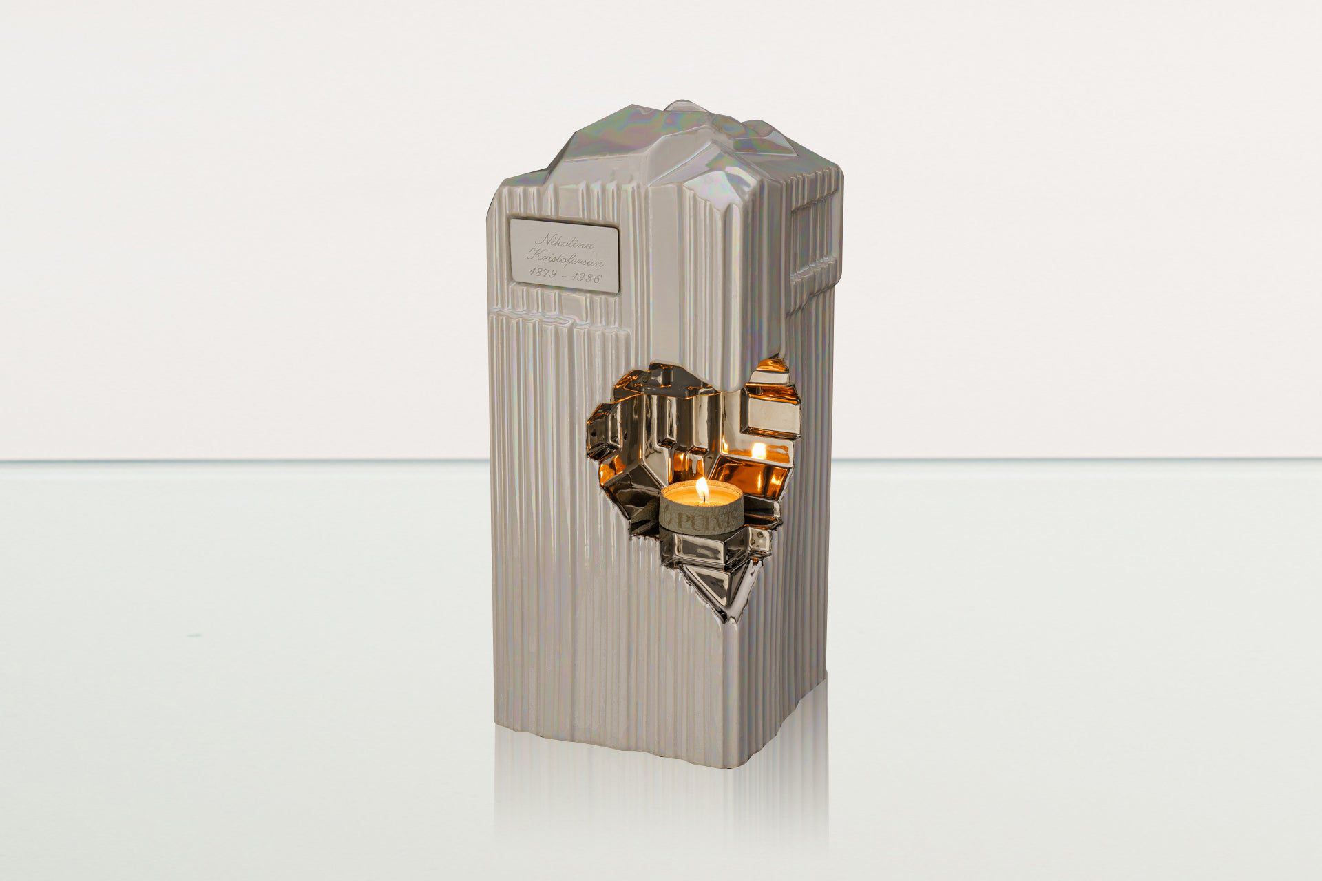 Progettata e realizzata a mano dai rinomati artisti Pulvis, questa urna cineraria con portacandela, denominata “Heart”, è un autentico simbolo di amore e ricordo. Realizzata in ceramica di alta qualità per garantire una memoria duratura, questa urna artigianale può essere utilizzata anche come parte di un set di urne companion.