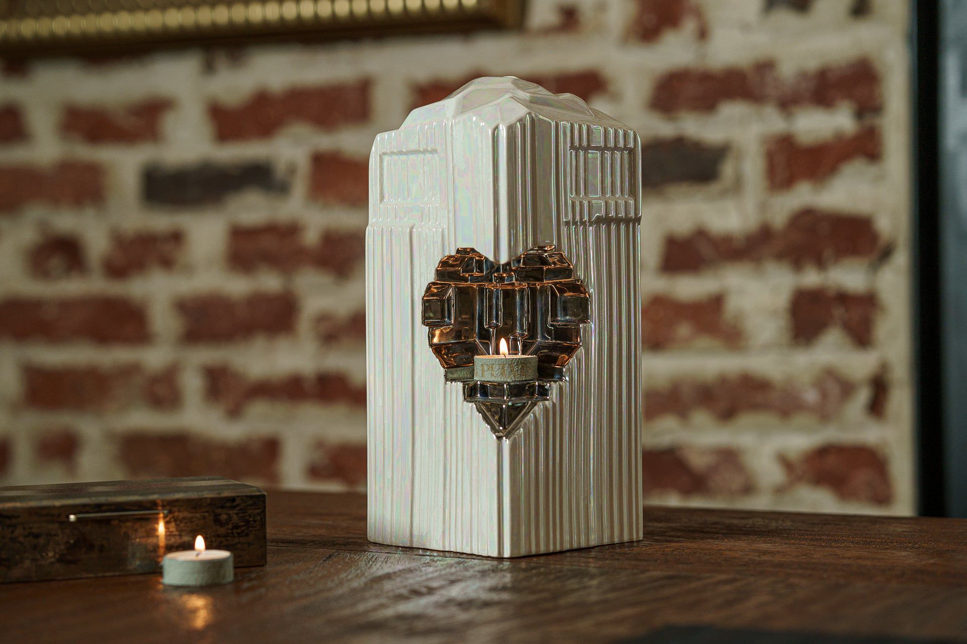 Urna Cineraria con Candela per Ceneri “Heart” – Grande | Bianco Perla | Urna in Ceramica
