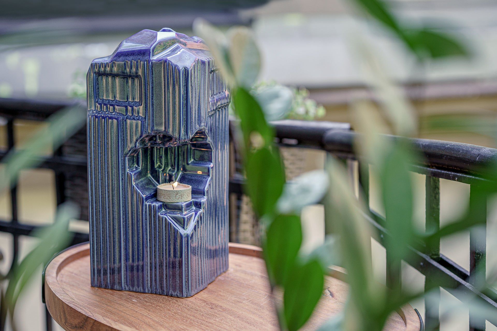 Urna Cineraria con Candela per Ceneri “Heart” – Grande | Blu Mélange | Urna in Ceramica