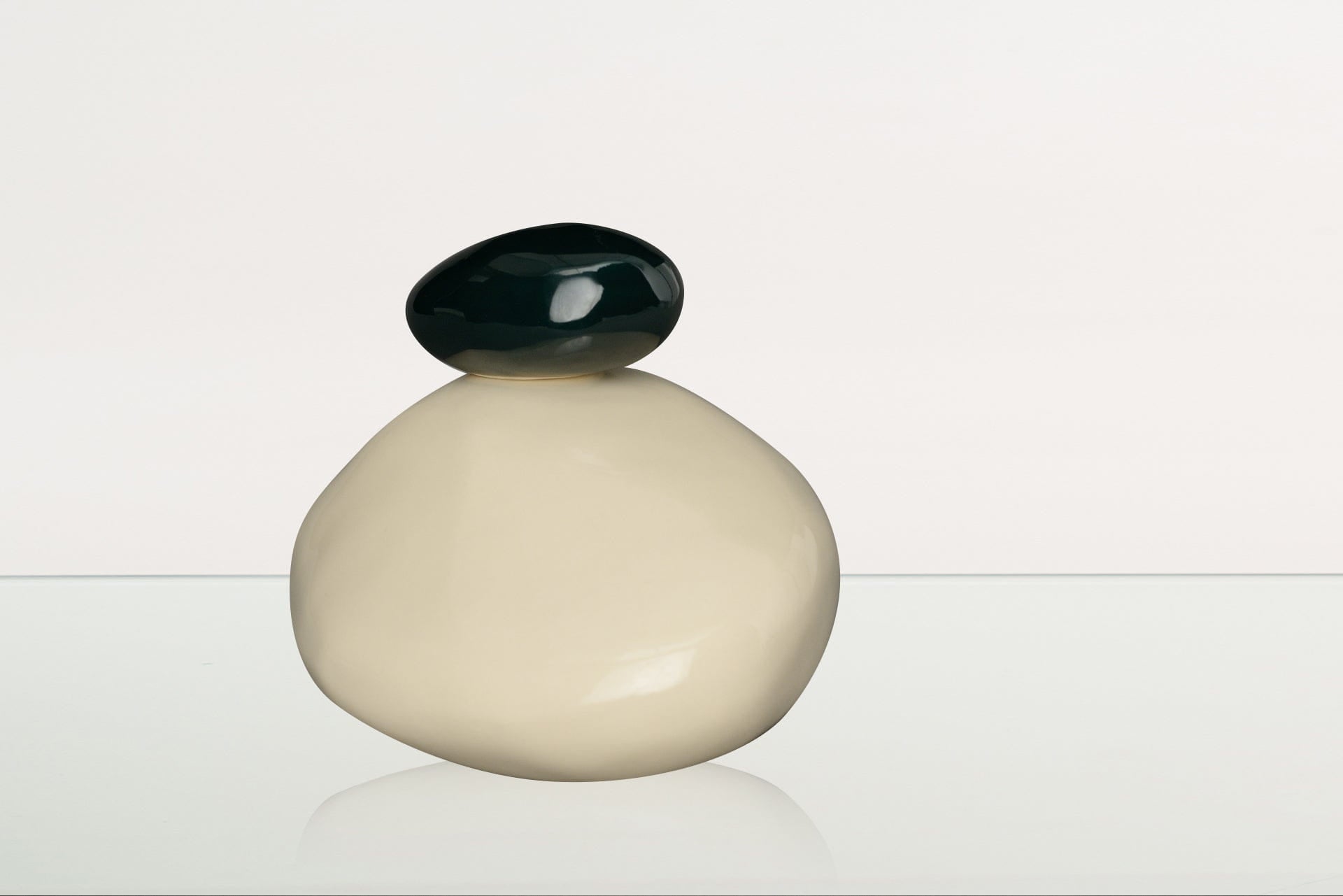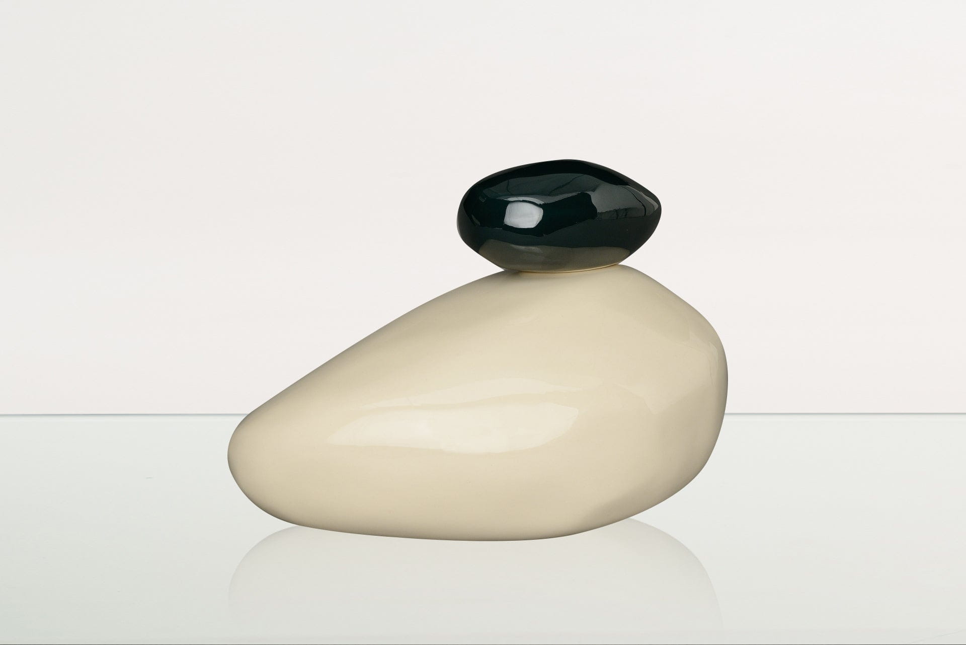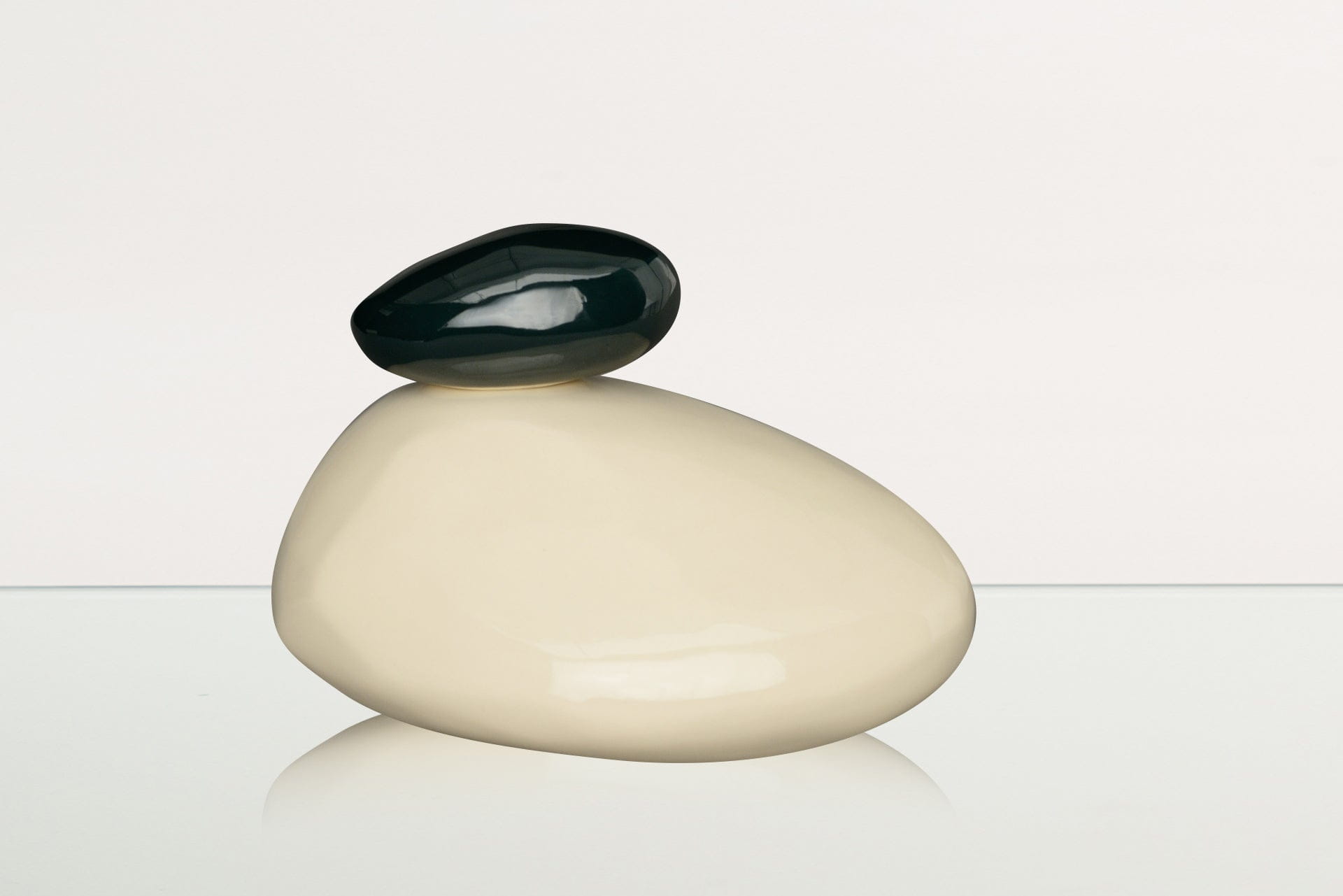 Le curve pulite e naturali delle pietre enfatizzano la tranquillità, mentre la ceramica bianca, che rappresenta compassione, purezza e pace, crea un memoriale elegante ma al tempo stesso discreto per la persona amata. La pietra più piccola, posta sopra, è disponibile in verde intenso o in un azzurro chiaro dalla texture particolare, entrambe splendide evocazioni del mondo naturale che ci circonda.