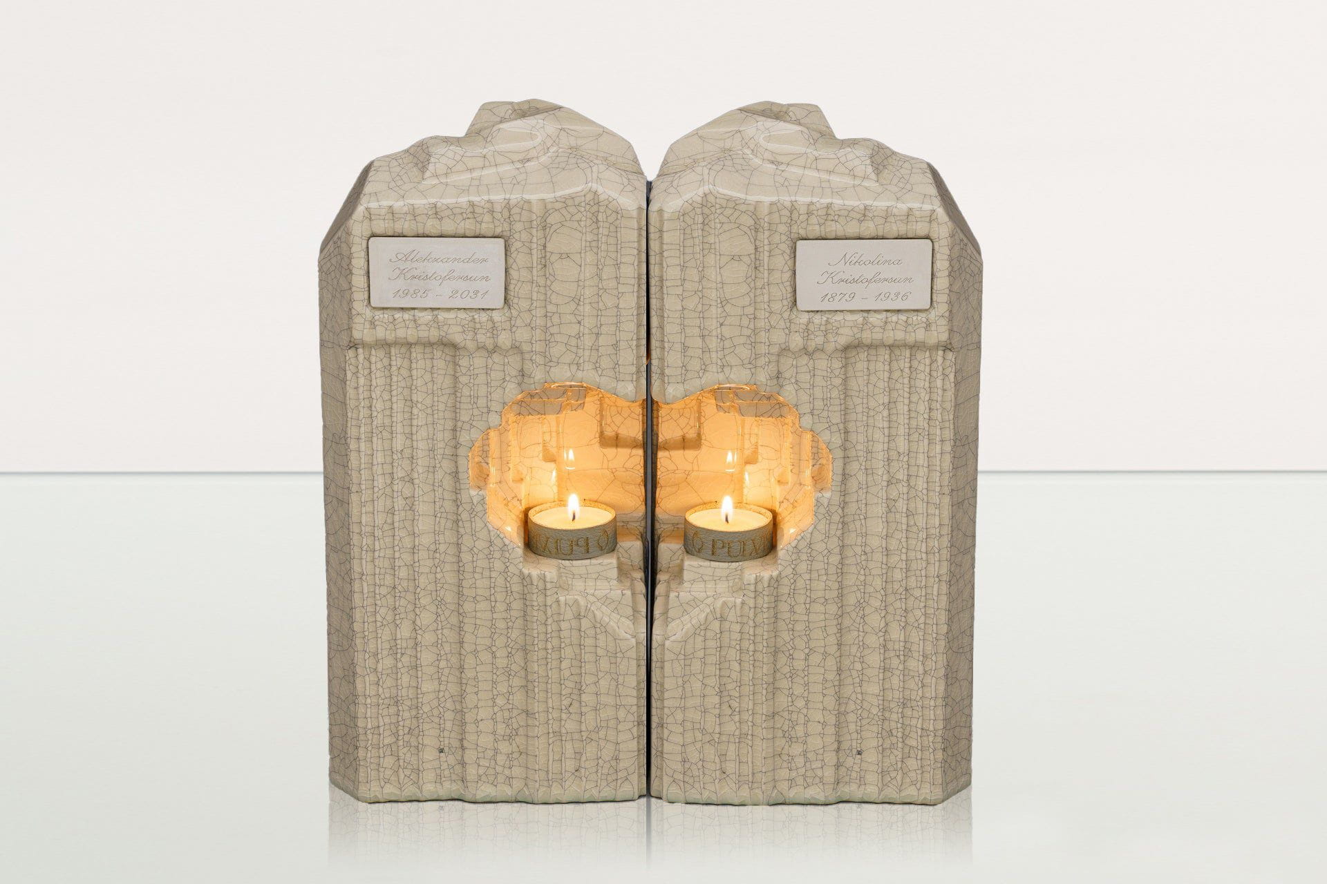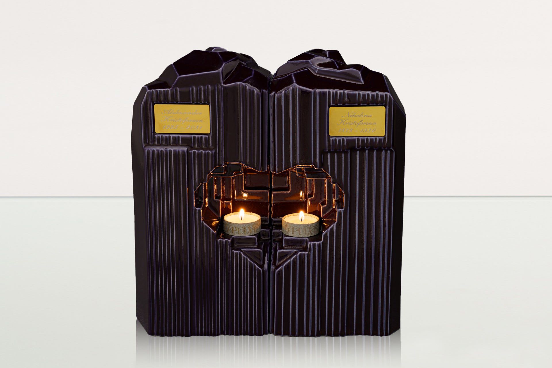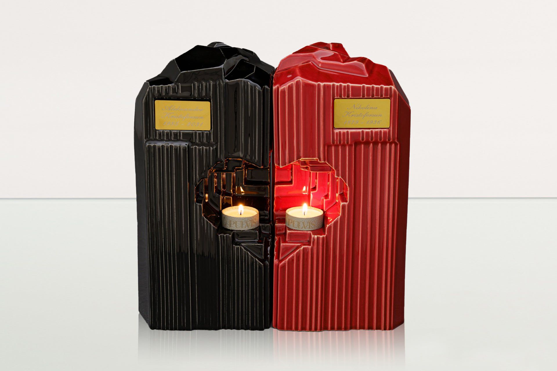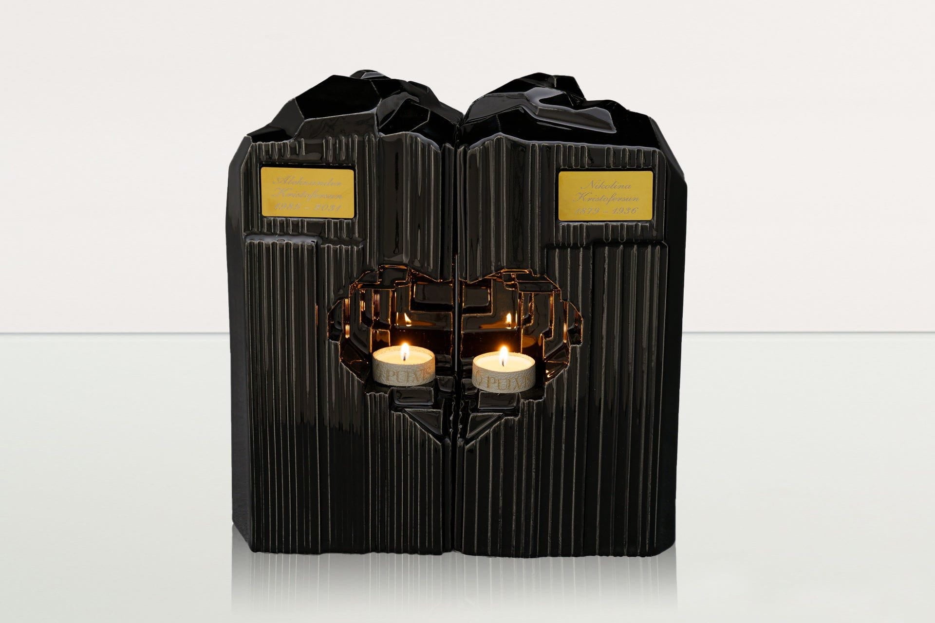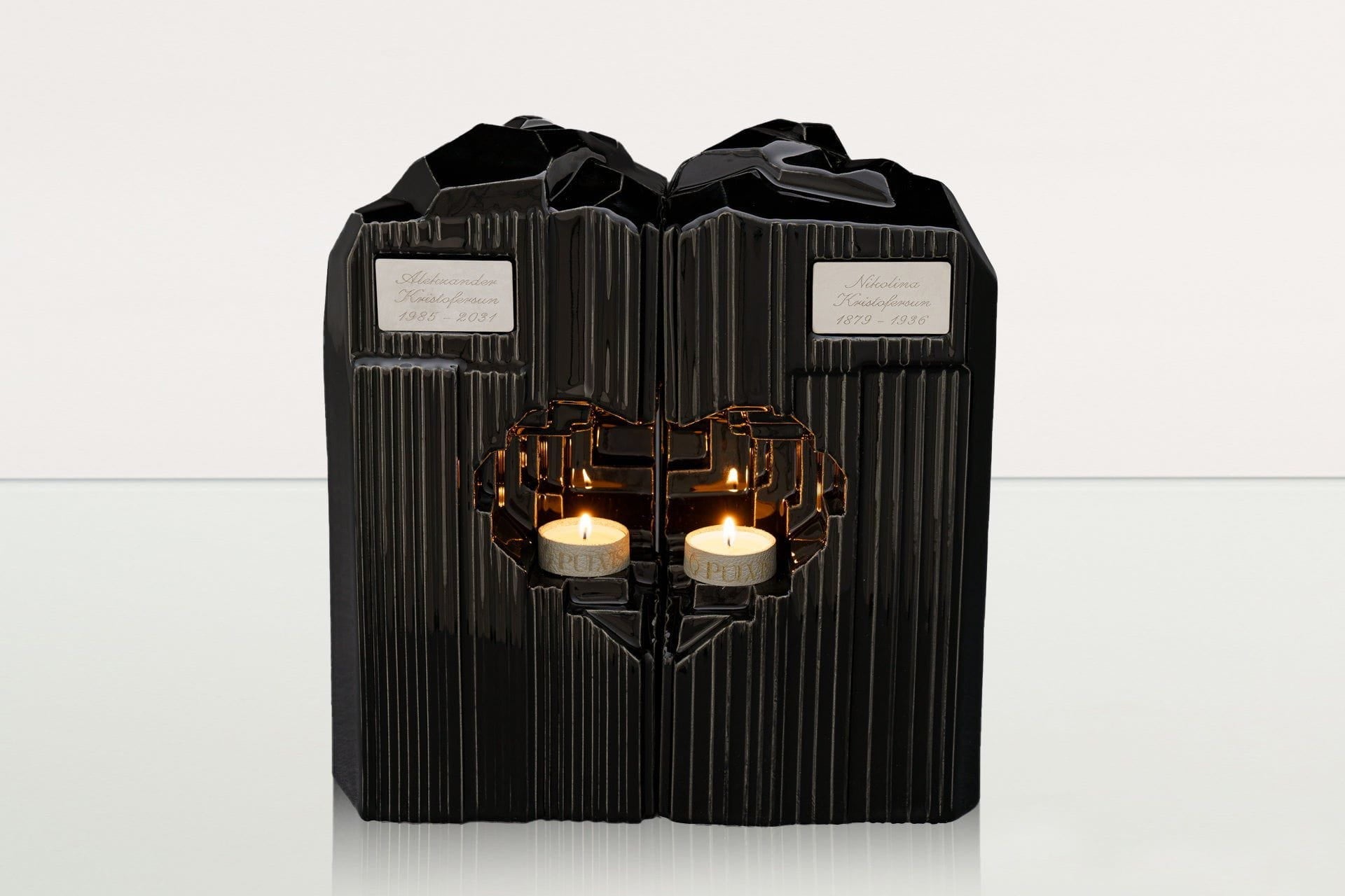 La collezione comprende urne per adulti, urne di grandi e medie dimensioni, urne ricordo e urne per animali, realizzate in ceramica, legno, bronzo, carbonio, pelle, vetro e acciaio. Ogni pezzo è lavorato a mano da artigiani esperti nell’Unione Europea, secondo i più alti standard qualitativi.