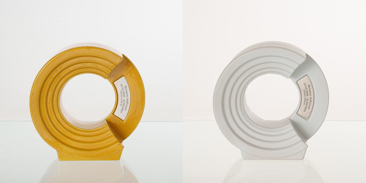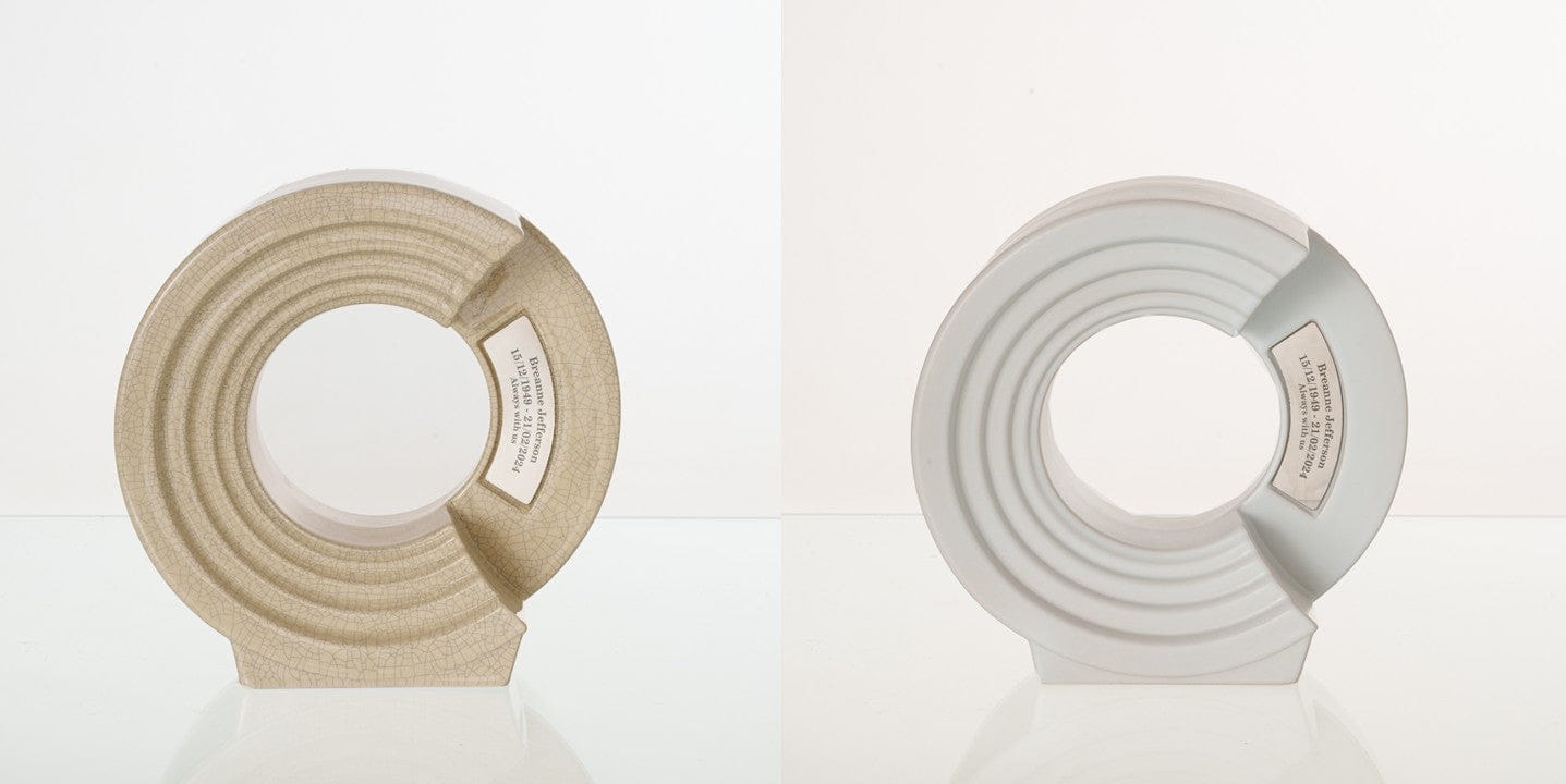 L’urna cineraria Solace è un’urna commemorativa contemporanea in ceramica, realizzata a mano in Europa da Pulvis Art Urns, progettata per onorare la vita con semplicità, equilibrio e significato. La sua forma minimalista e raffinata la rende adatta sia per ambienti interni che esterni, integrandosi armoniosamente in case moderne, giardini o spazi commemorativi.