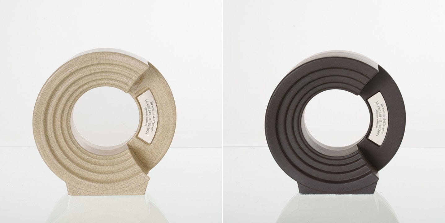 Una caratteristica distintiva dell’Urna Compagna Solace è il suo esclusivo design a simbolo dell’infinito. Quando due urne Solace vengono posizionate affiancate, le loro forme si allineano creando un elegante simbolo dell’infinito, che rappresenta amore eterno, unità e memoria. Questo rende Solace un’urna commemorativa potente e simbolica per due persone, offrendo sia armonia visiva che profondità emotiva.