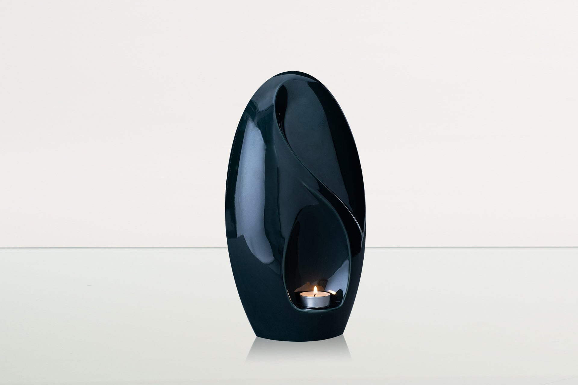 Il portacandela integrato consente di accendere una candela commemorativa nei momenti di raccoglimento, rendendo quest’urna un’eccellente aggiunta a qualsiasi ambiente. La luce soffusa della fiamma si riflette in modo armonioso sulle linee aggraziate di questa urna di grandi dimensioni, esaltandone naturalmente la bellezza.