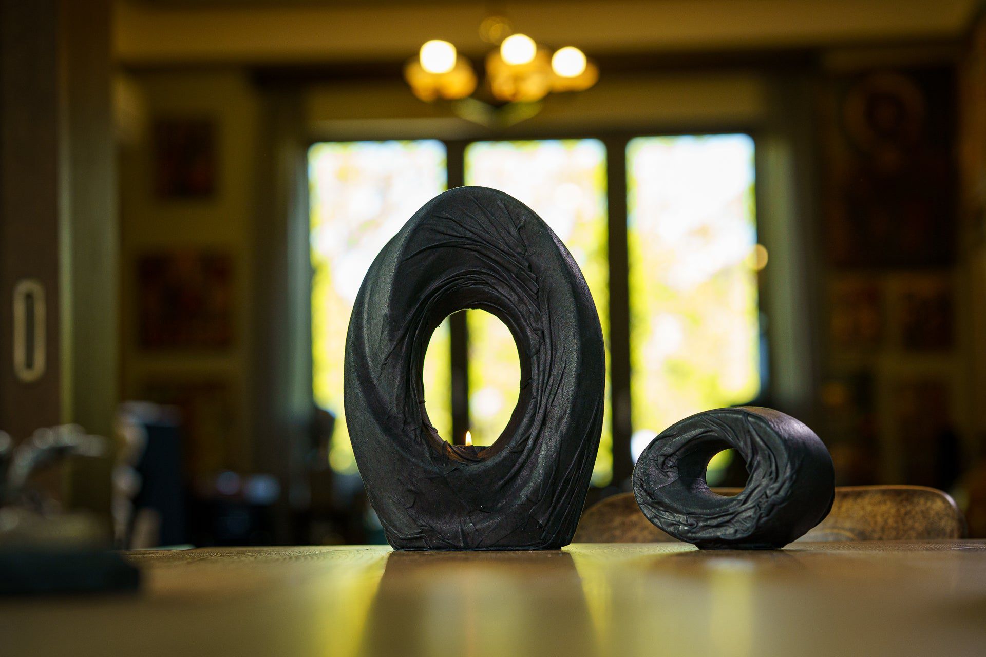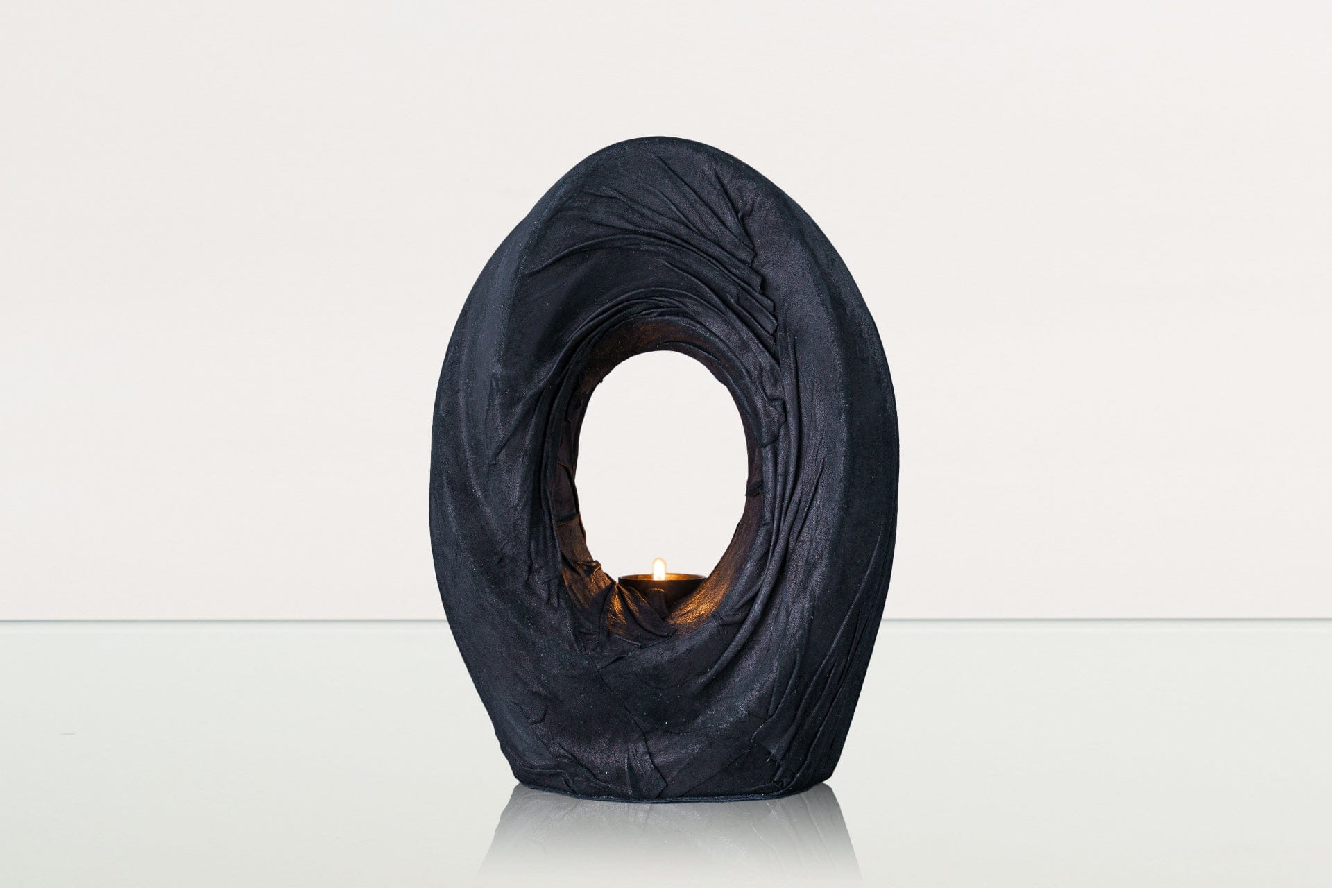 The idea, which lies behind this beautiful, abstracts urn, entitled The Passage, is focused on the bond between this and the outer world. The soft light from the flame of the candle is heavenly reflected on the graceful lines of the urn, which naturally emphasises its beauty. The graceful lines of this cremation art urn are a beautiful, yet subtle way to memorialise loved ones in your home.