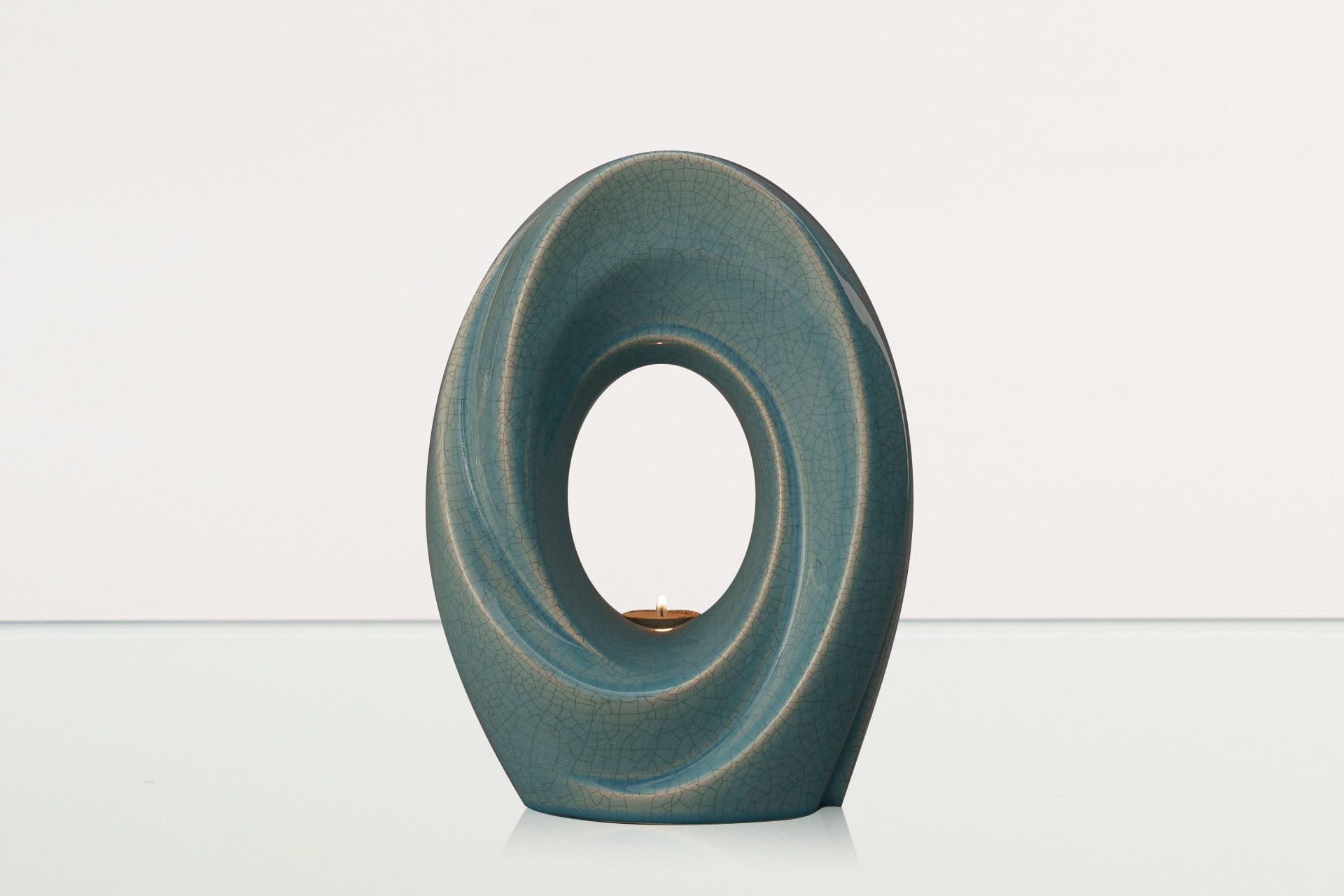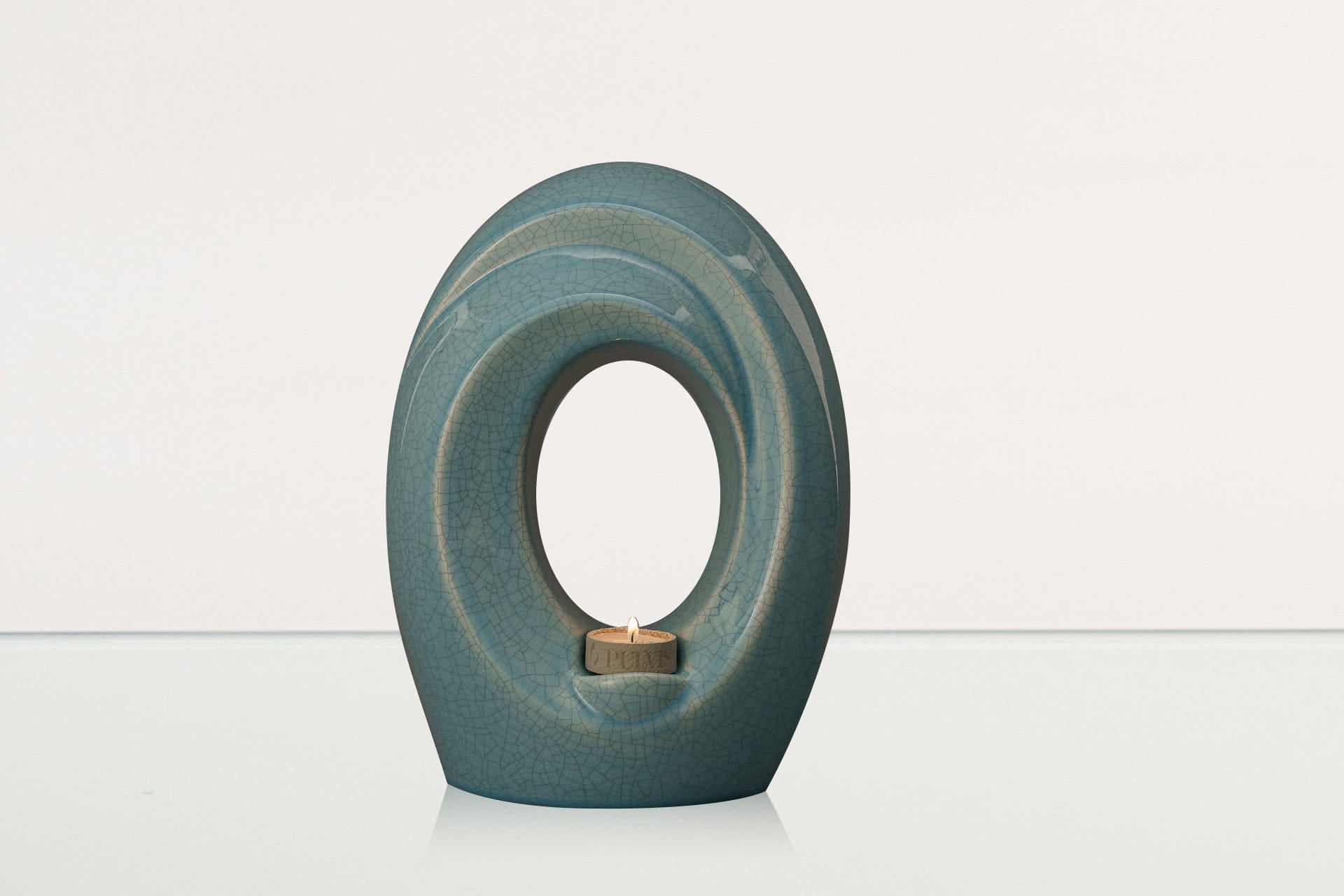 Introducing "The Passage" Handmade Urn for Adults by Pulvis, a masterpiece of European craftsmanship. This exquisite urn features a stunning Blue Craquelure finish, characterized by its intricate, crackled texture that symbolizes the passage of time and the beauty found in life's transitions. Expertly crafted with care, this urn provides a dignified and elegant resting place for your loved one, blending timeless artistry with profound meaning.
