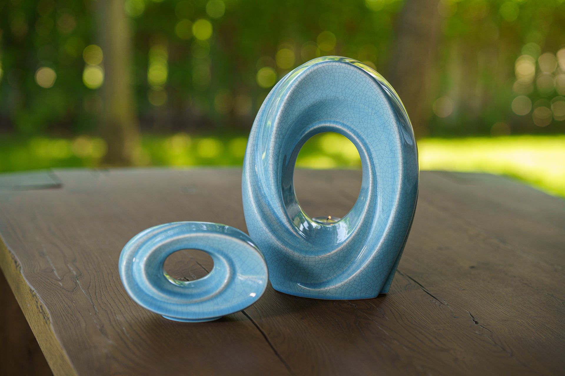 Urna cineraria artigianale per ceneri “Il Passaggio” – Urna grande | Blu craquelé