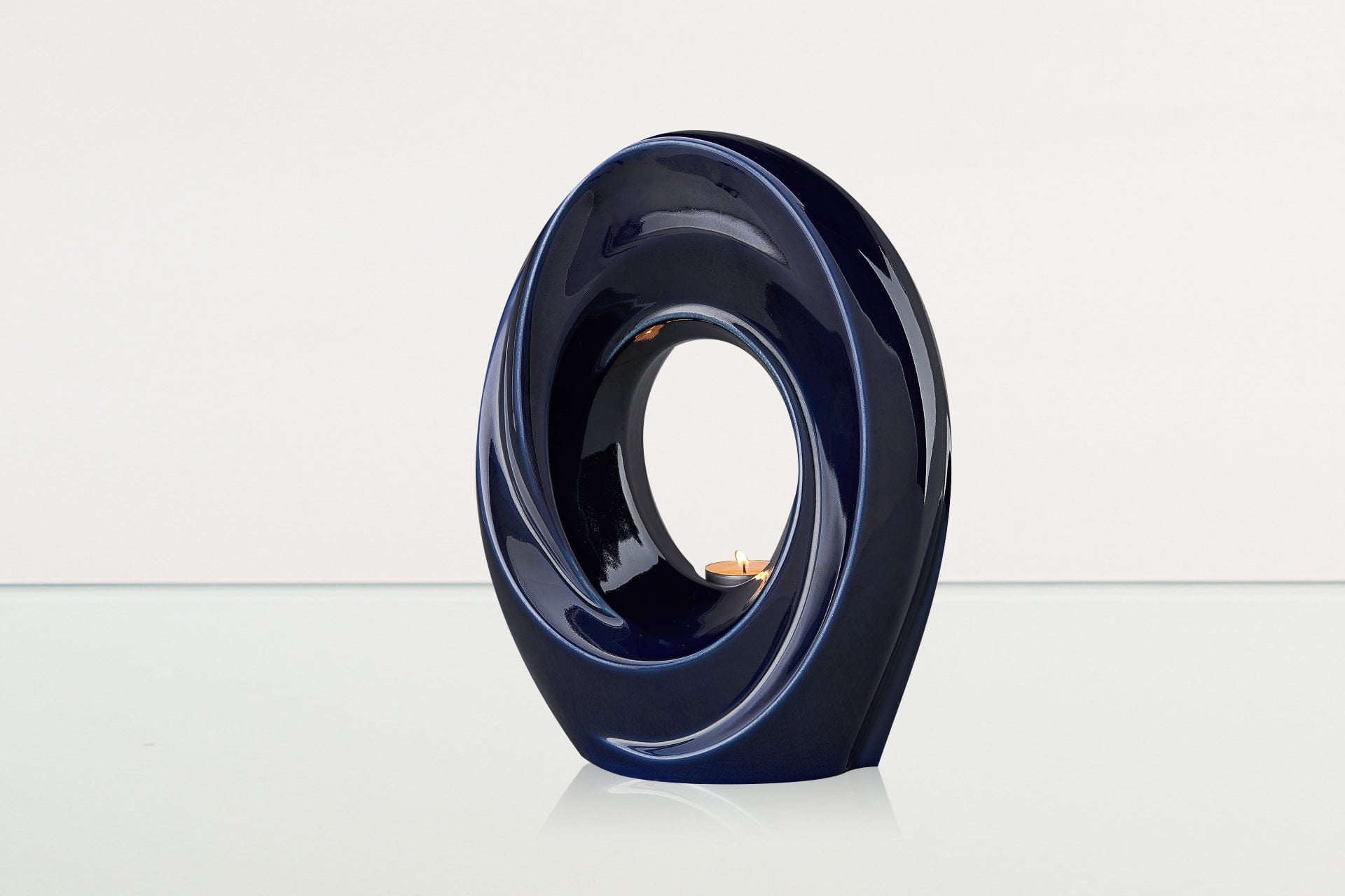 Urna cineraria artigianale per ceneri “Il Passaggio” – Urna grande | Cobalto metallizzato | In ceramica