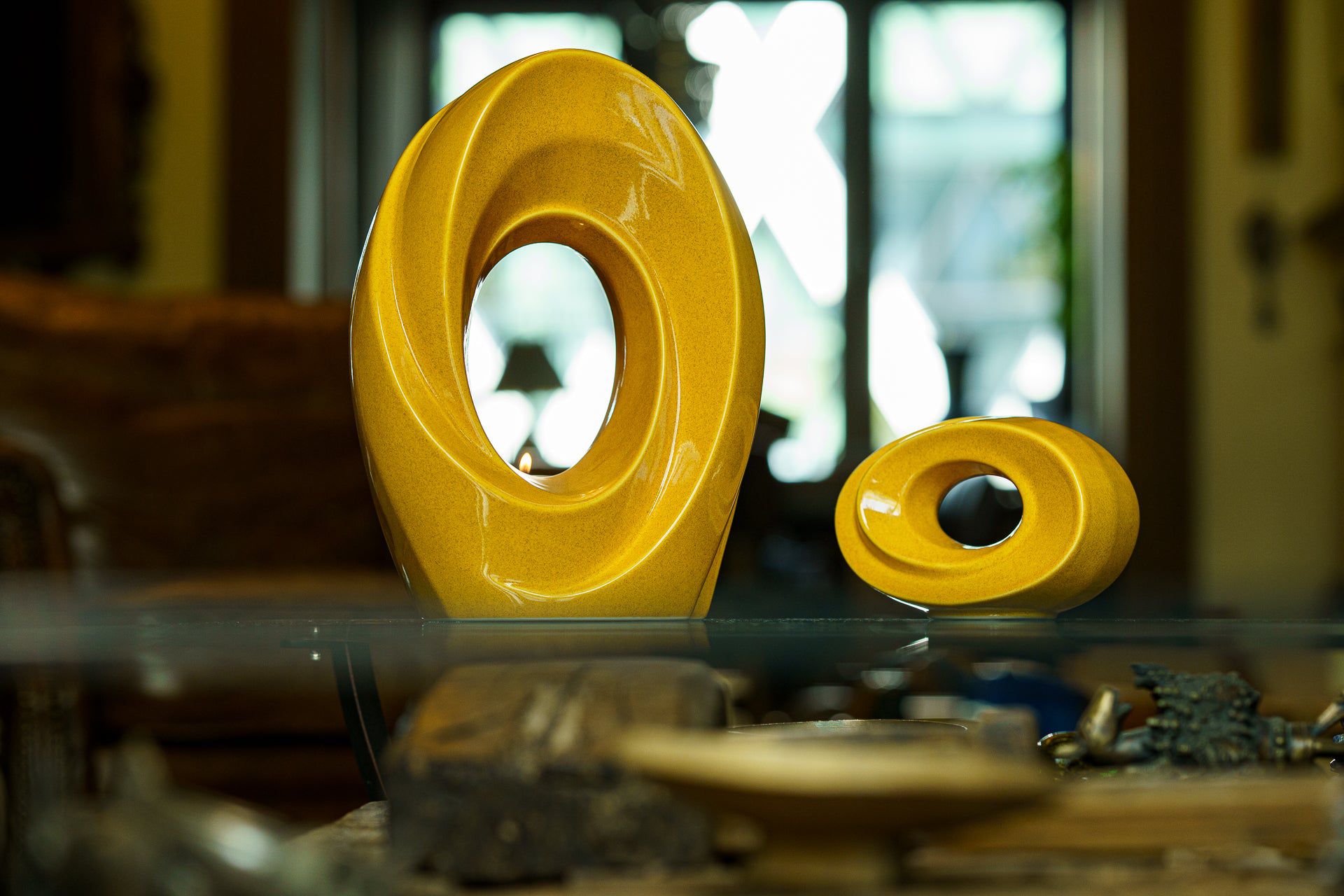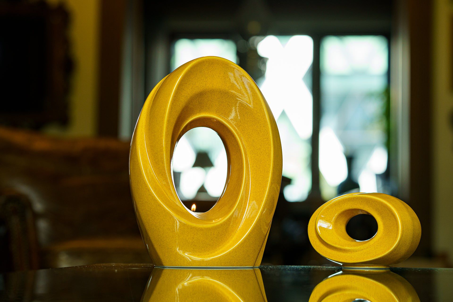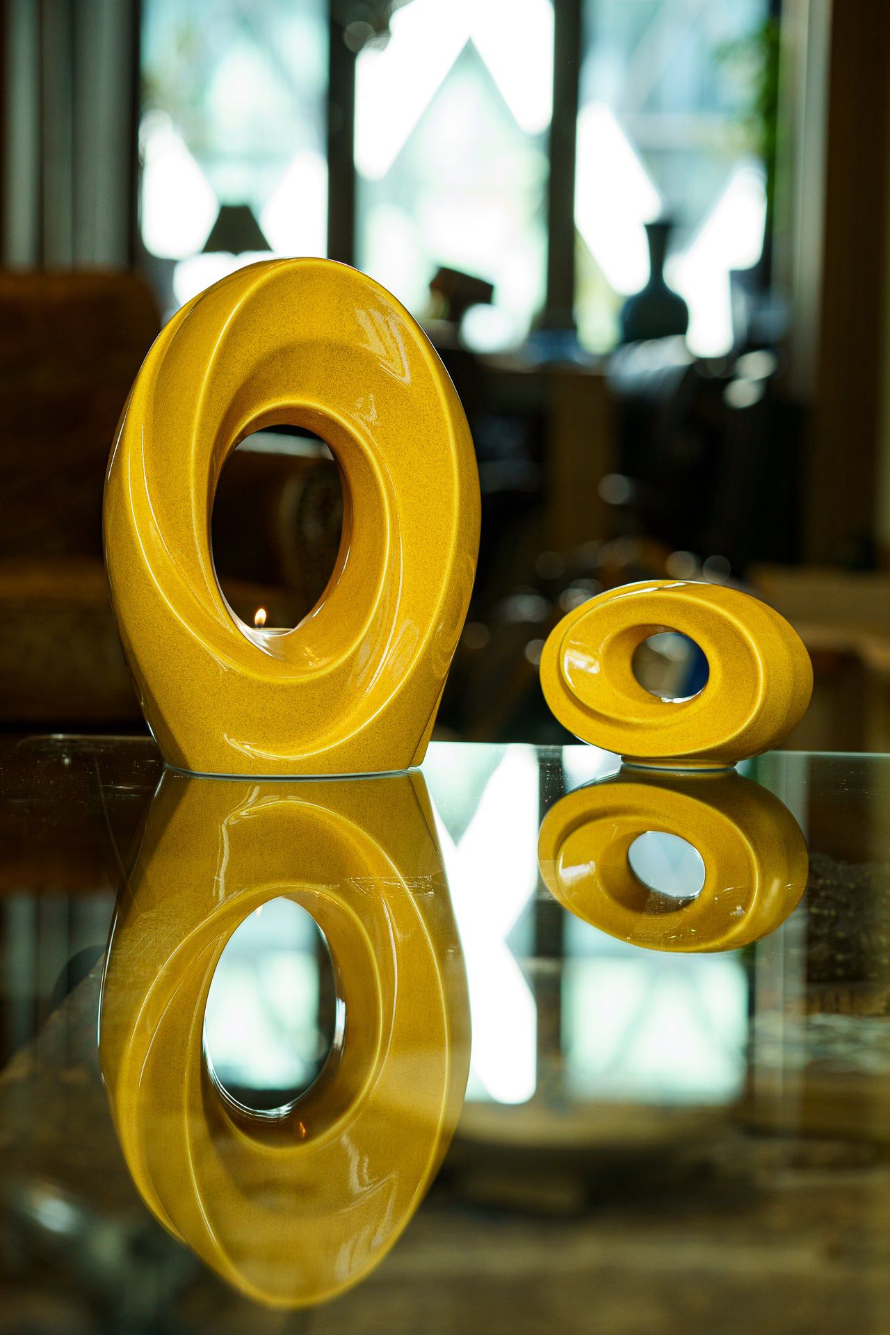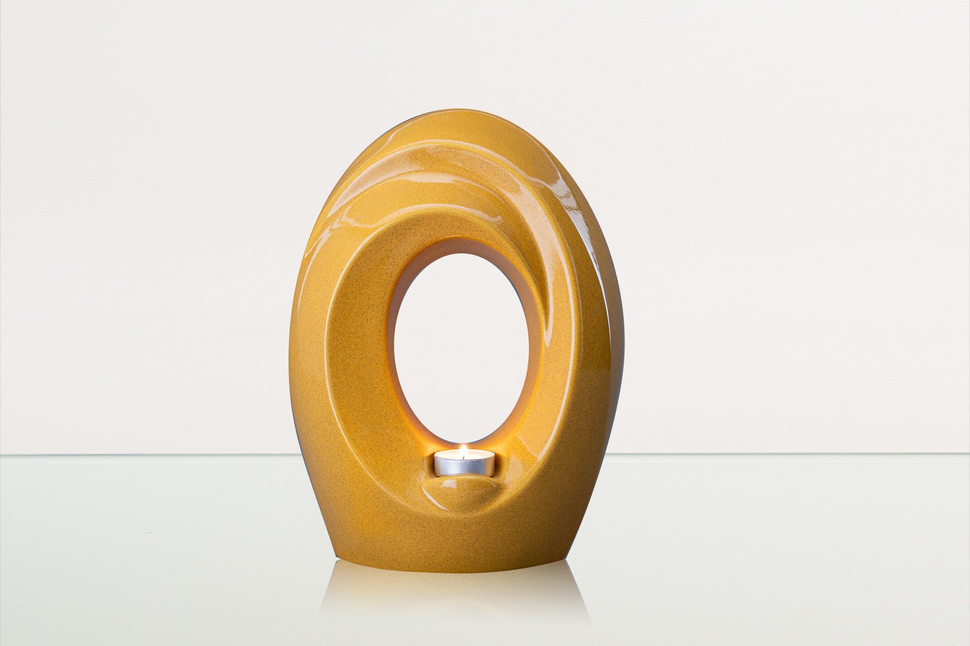 Urna cineraria artigianale per ceneri “Il Passaggio” – Urna grande | Giallo ambra | In ceramica