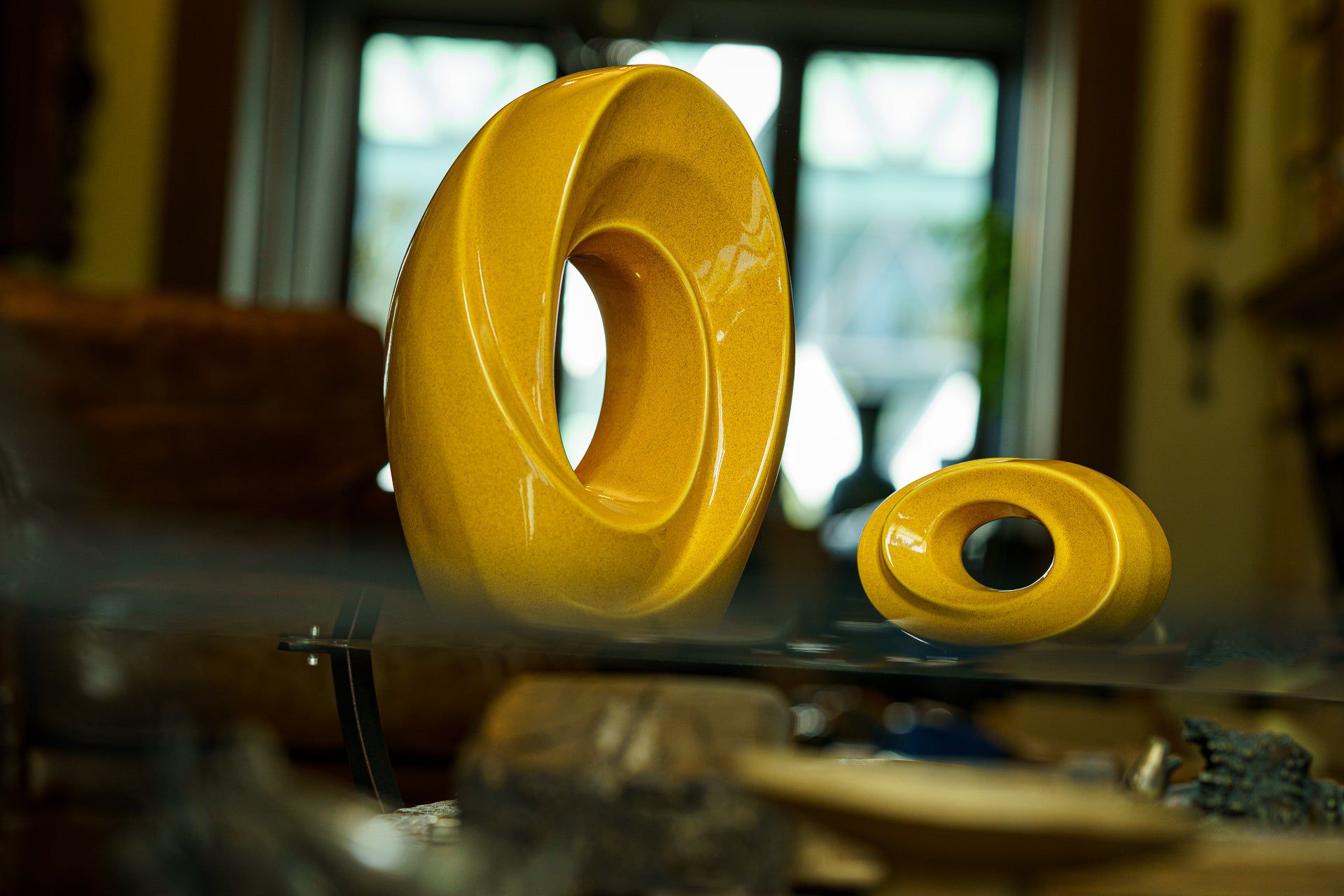 Introducing "The Passage" – a handmade cremation urn for ashes in a radiant Amber Yellow color, meticulously crafted by Pulvis Art Urns. This exquisite urn is a beautiful and dignified way to honor the memory of your loved one, providing a warm and inviting tribute.