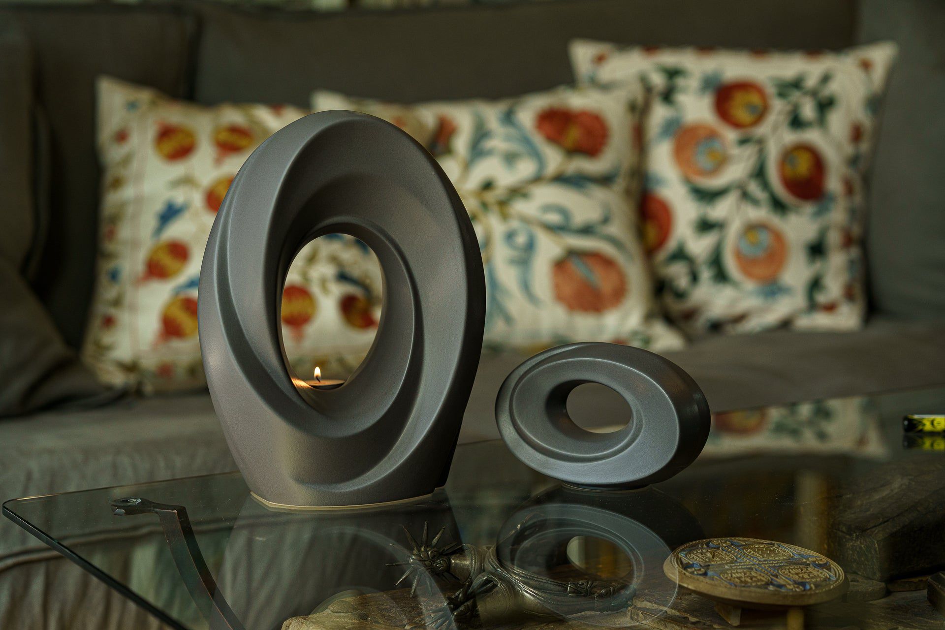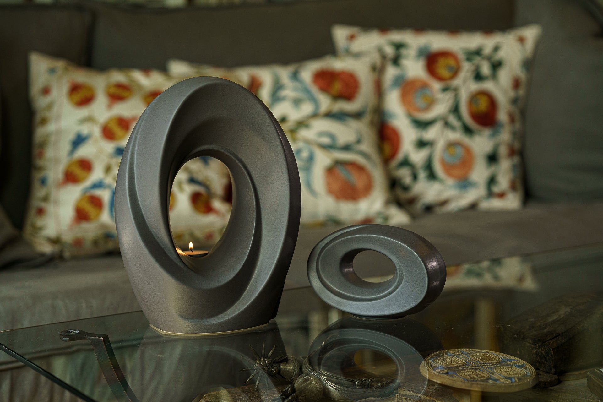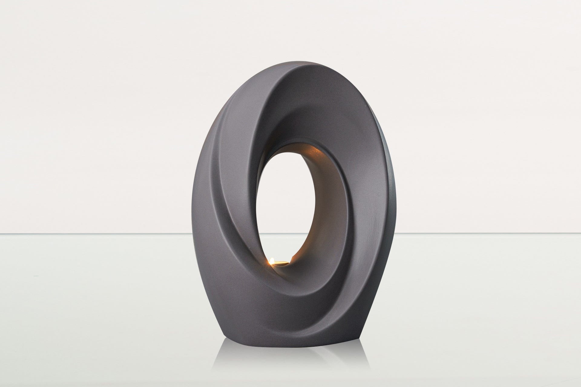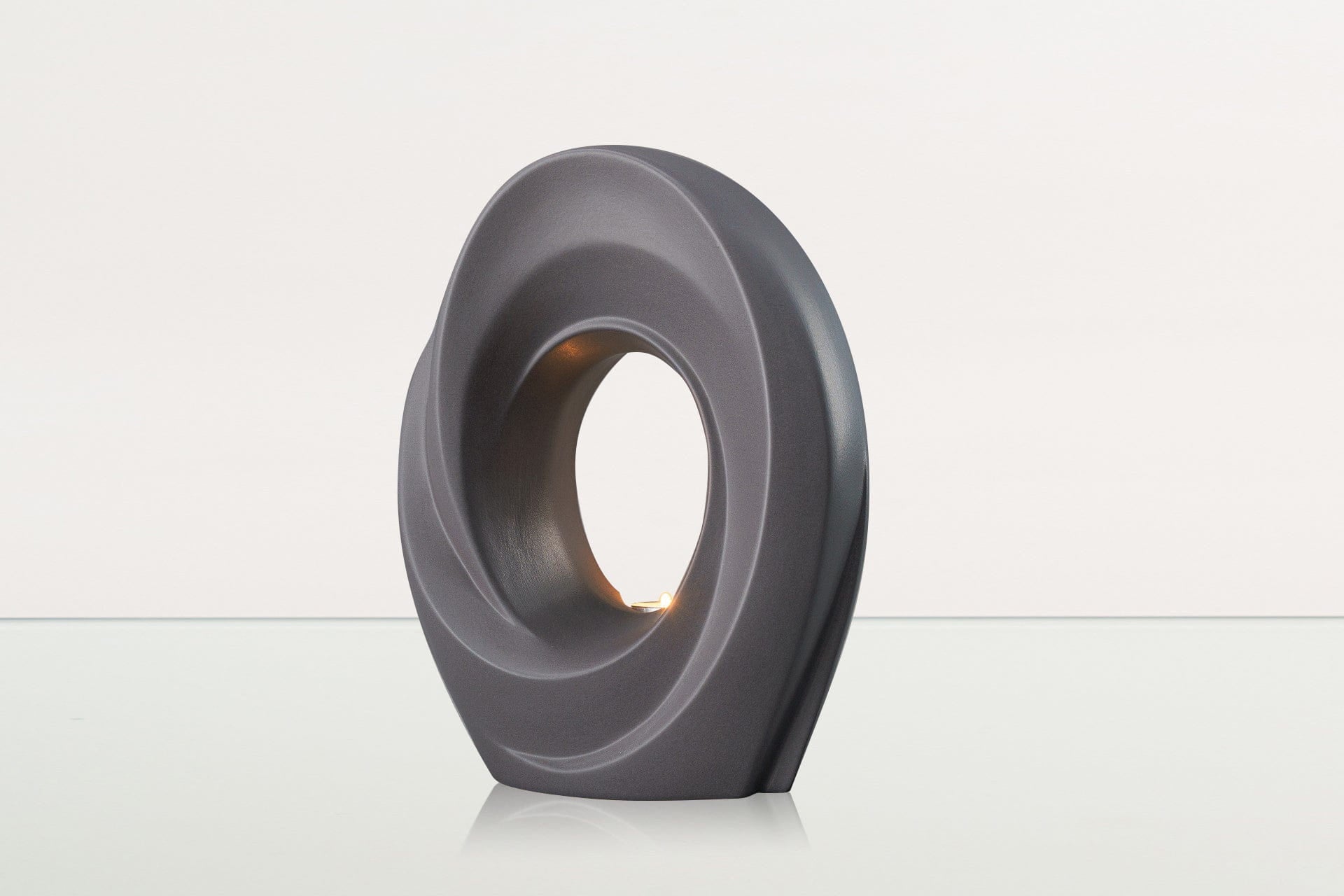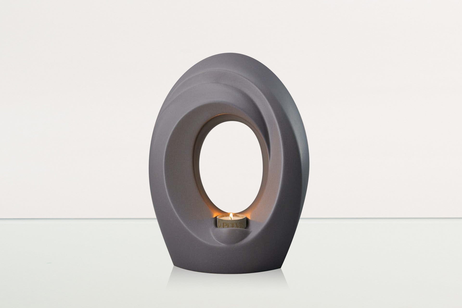 The deep grey matte of this ceramic urn perfectly frames the candle within, while complimenting everything from modern to traditional decor. The graceful lines of this cremation art urn are a beautiful, yet subtle way to memorialise loved ones in your home.