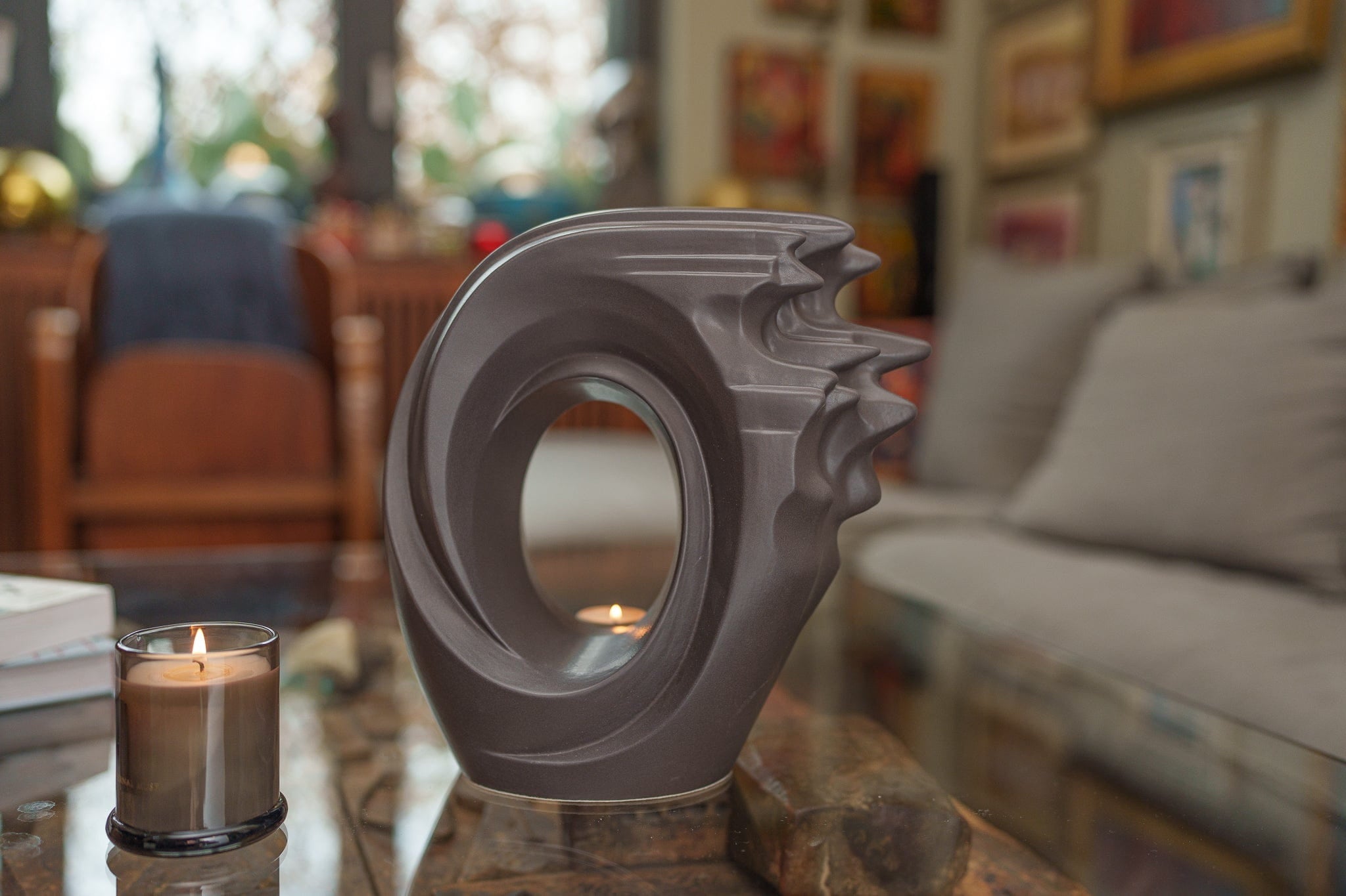 Urna cineraria artigianale “Zephyr” – Urna in ceramica per adulti | Grigio Opaco