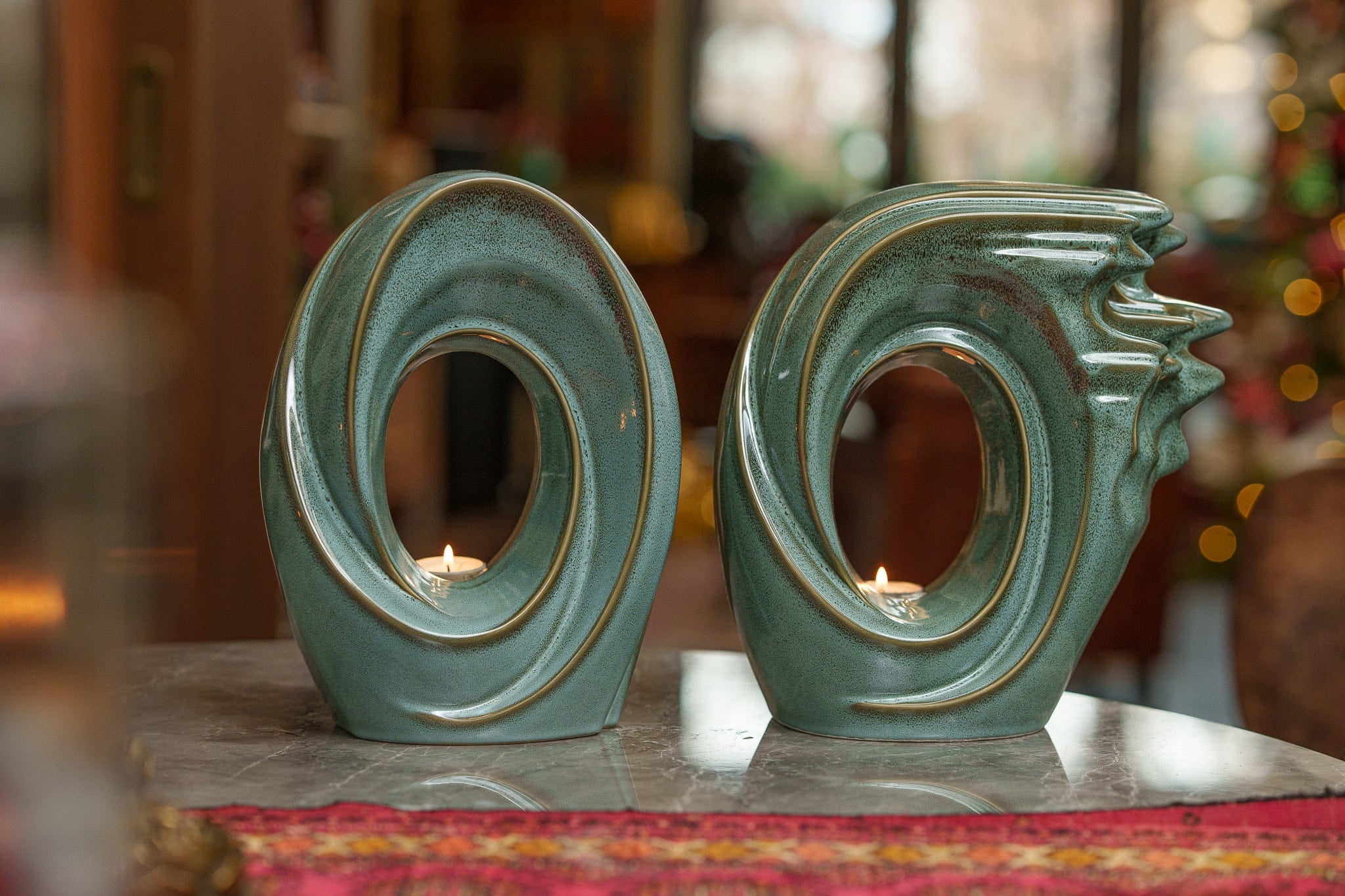 Urna cineraria artigianale “Zephyr” – Urna in ceramica per adulti | Verde Oleoso Melange
