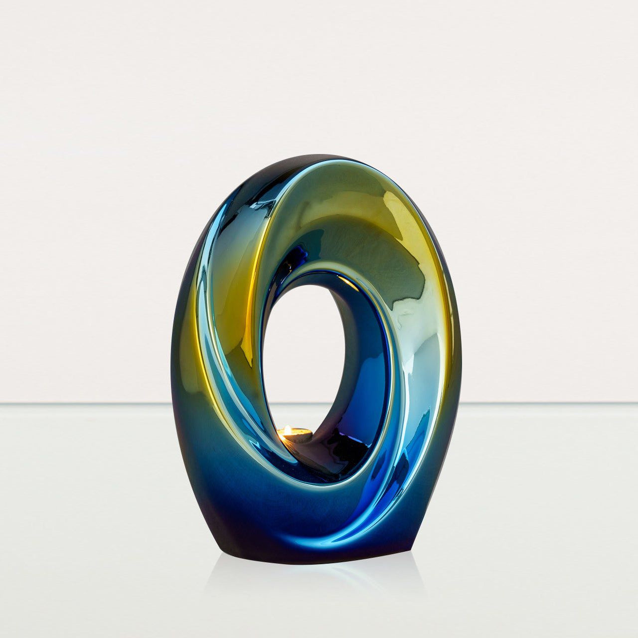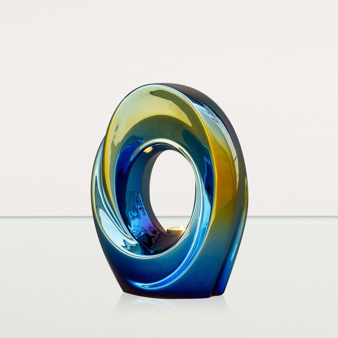 The idea, which lies behind this beautiful, abstracts urn, entitled The Passage, is focused on the bond between this and the outer world. This art urn holds the ashes of your loved one within a gentle inward spiral, symbolizing the natural passage of time.