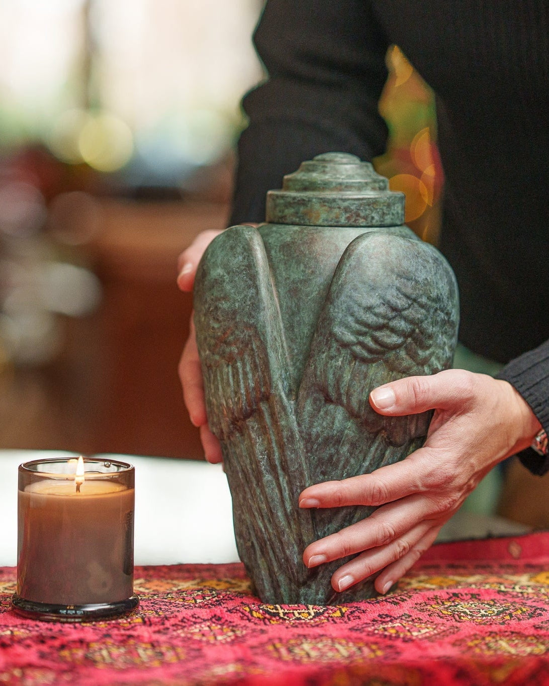 Urna cineraria in bronzo fuso "Wings" – Patina verde | Urna in bronzo esclusiva