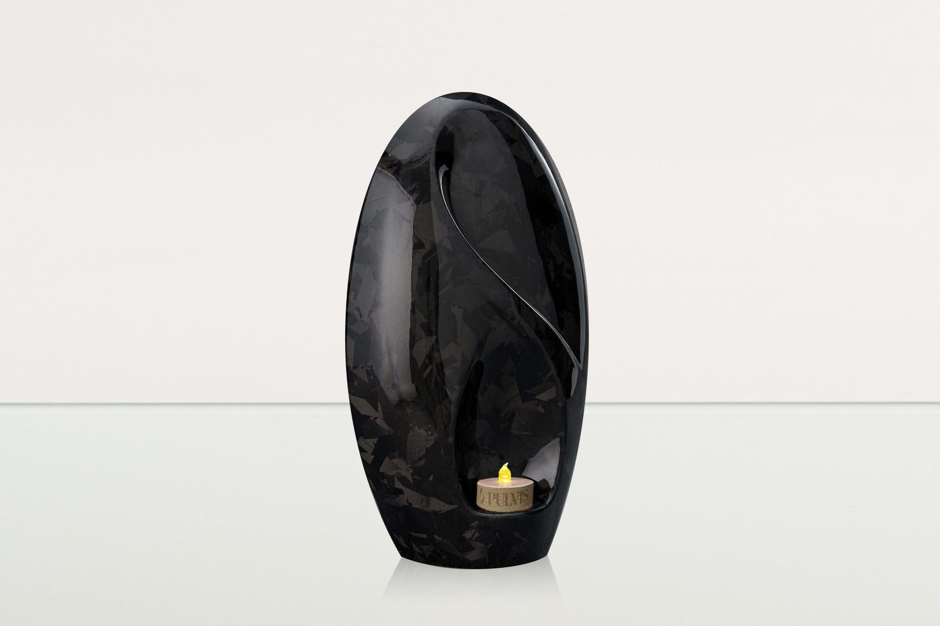 Urna Cineraria in Fibra di Carbonio “Eternity” – Carbonio Forgiato | Nero | Candela LED