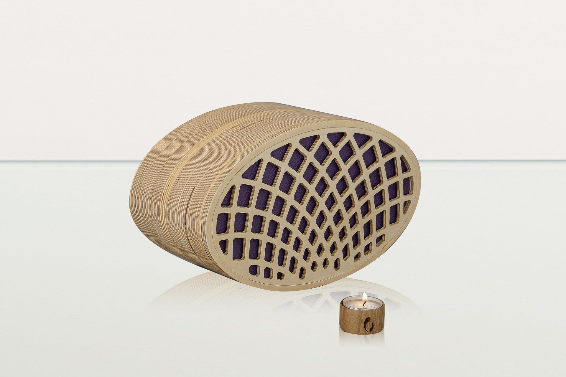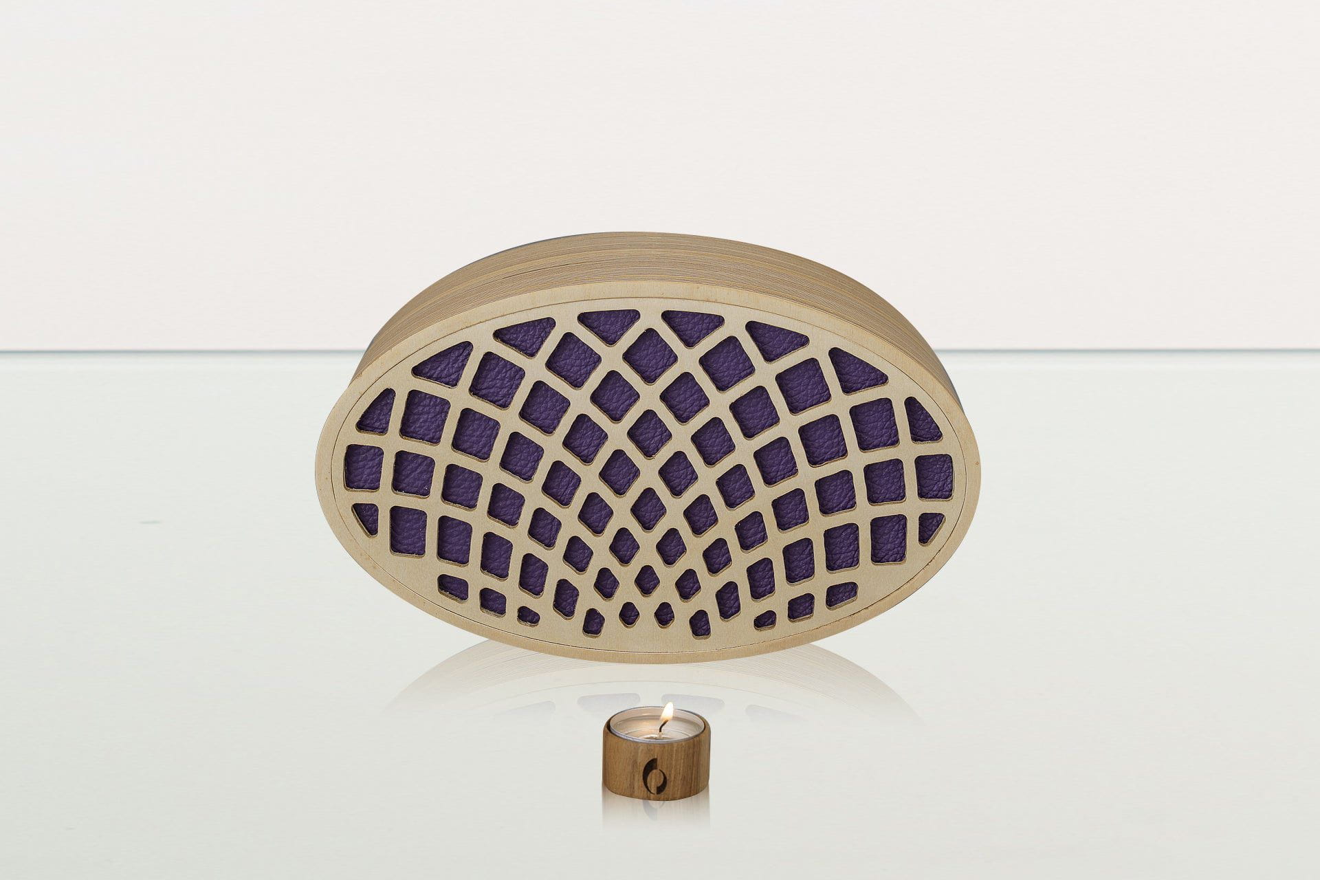 Urna cineraria in legno ''Commemorativa'' - Fatta a mano - Pelle viola