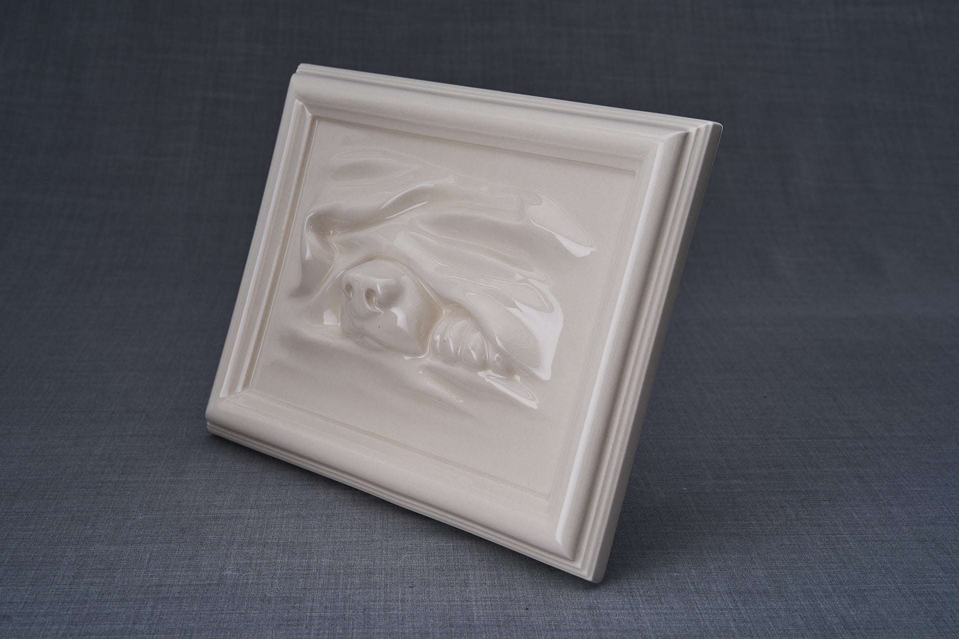 Ti presentiamo la nostra urna per cani in ceramica squisitamente realizzata, una testimonianza dell'amore eterno e della compagnia che condividi con il tuo compagno canino.
