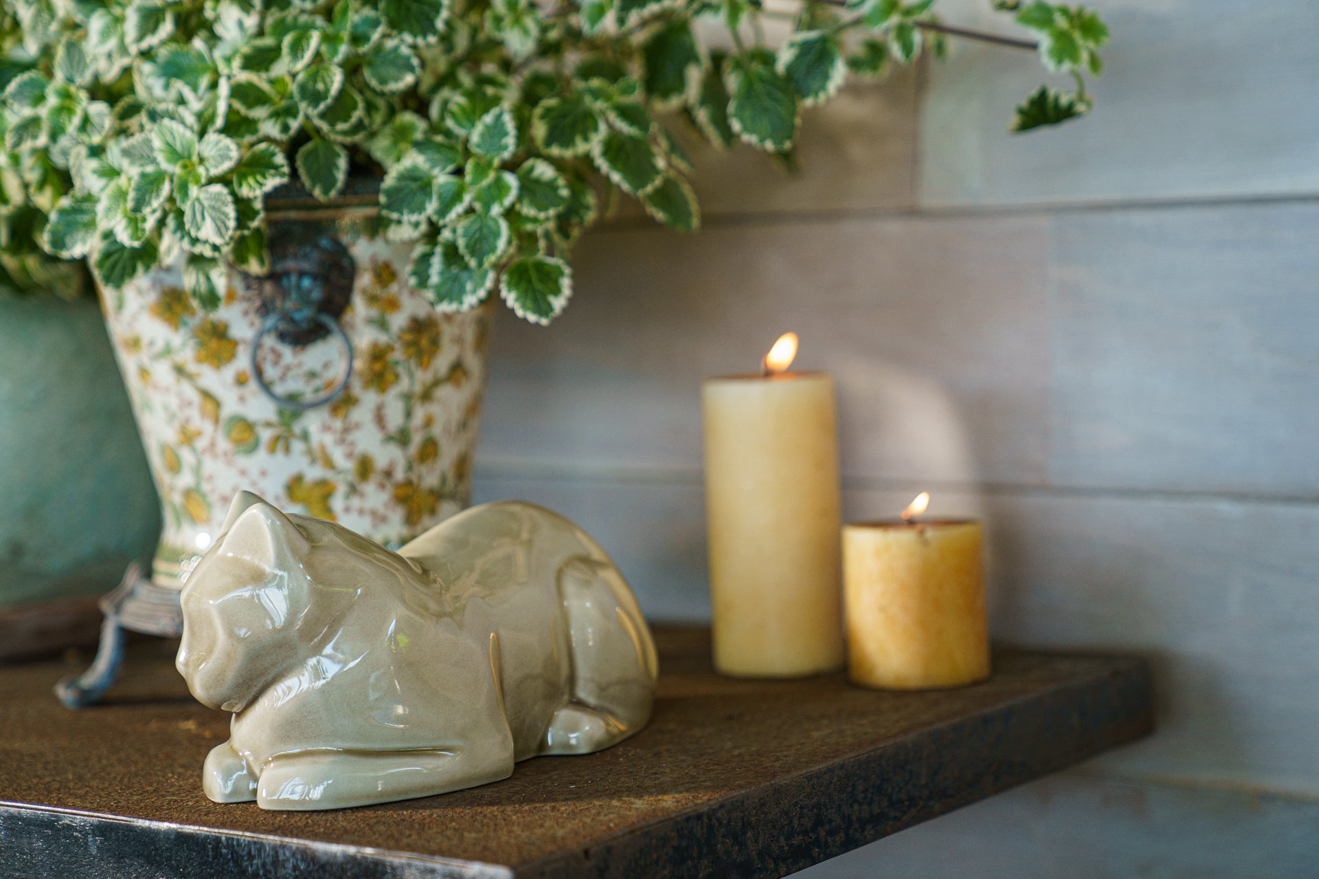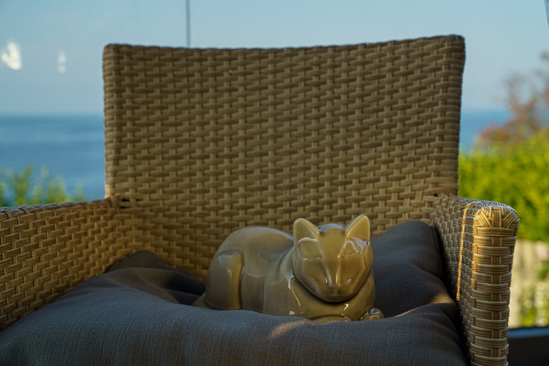Urna Cremazione per Ceneri Gatti - Grigio Beige | Ceramica | Artigianale