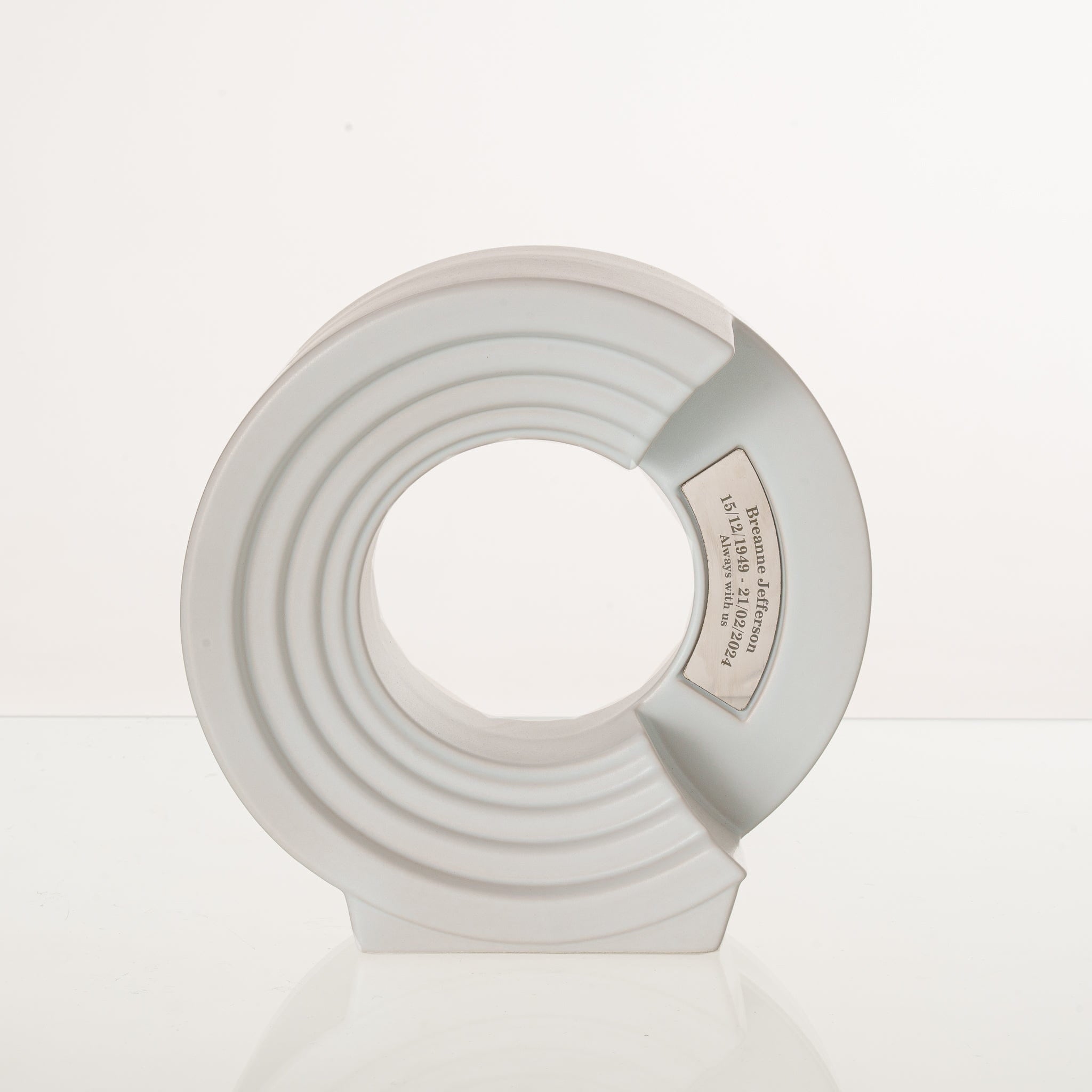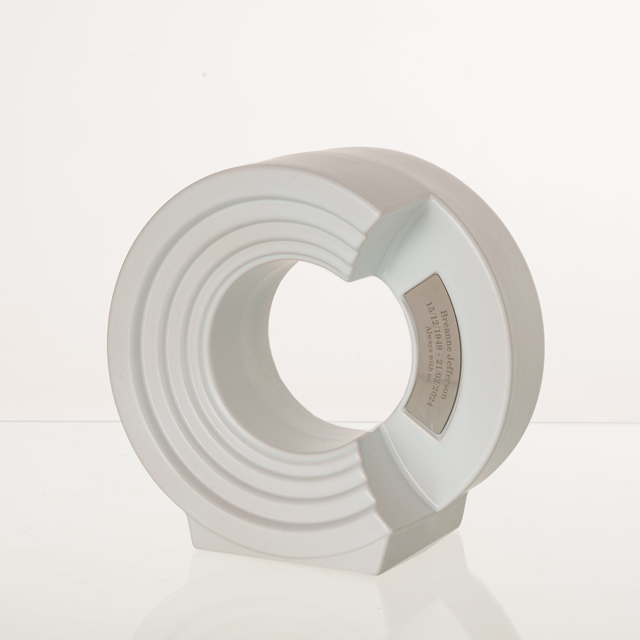 Realizzata con materiali premium e cotta due volte a 1200°C, l’urna è progettata per garantire durata e un tributo a lungo termine. Adatta alle ceneri di un adulto, dispone di un’area dedicata all’incisione per la personalizzazione. Quando due urne Solace vengono posizionate una accanto all’altra, formano un elegante simbolo dell’infinito, rendendola una scelta significativa come urna “companion” per coppie o famiglie.