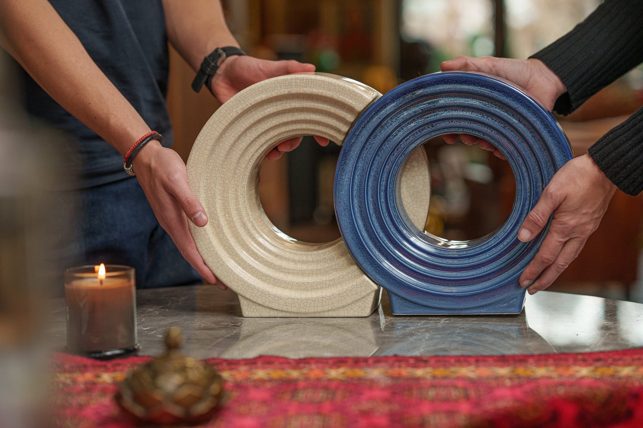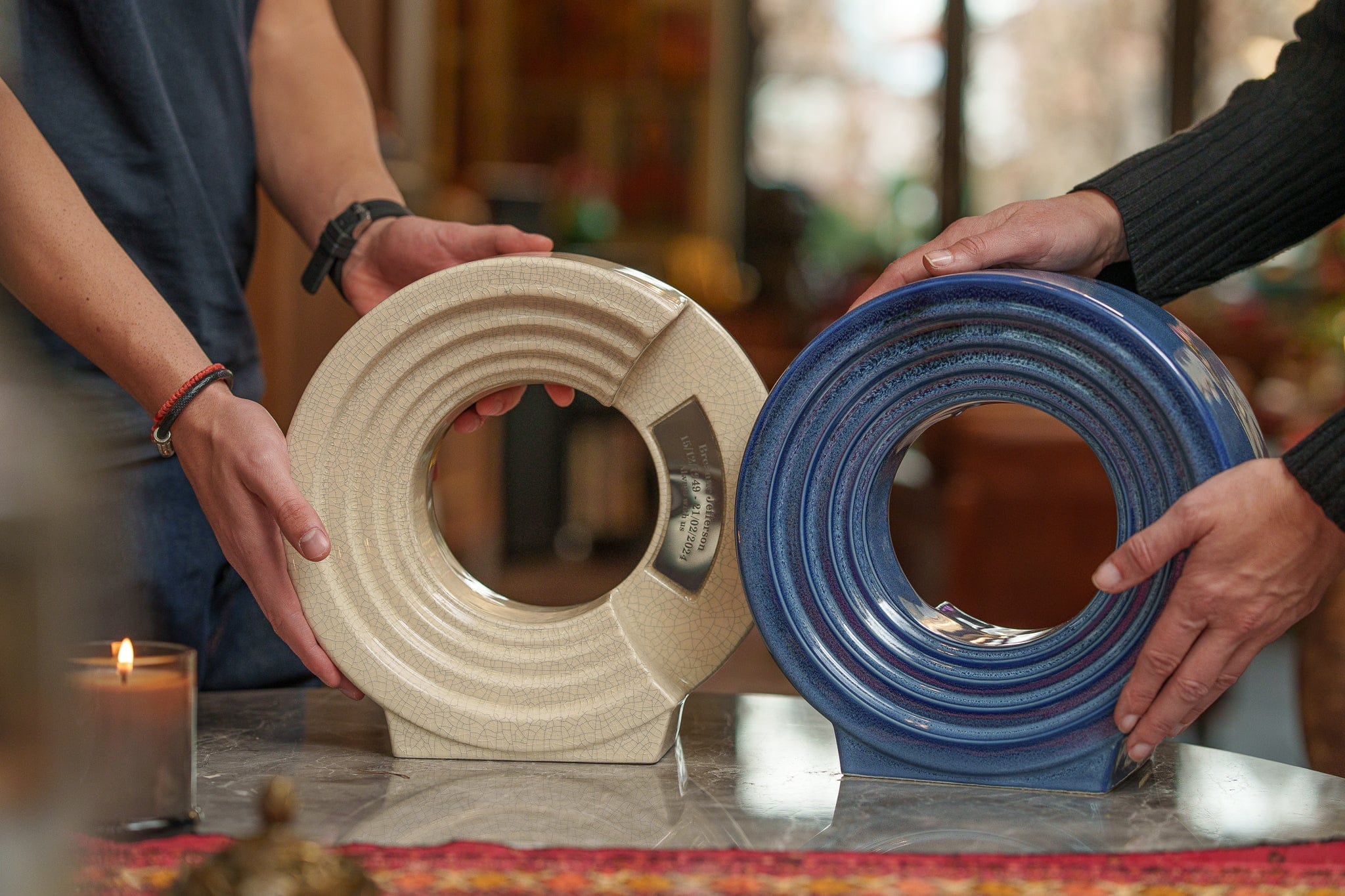 Realizzata con materiali premium e cotta due volte a 1200°C, l’urna è progettata per garantire durata e un tributo a lungo termine. Adatta alle ceneri di un adulto, dispone di un’area dedicata all’incisione per la personalizzazione. Quando due urne Solace vengono posizionate una accanto all’altra, formano un elegante simbolo dell’infinito, rendendola una scelta significativa come urna “companion” per coppie o famiglie.