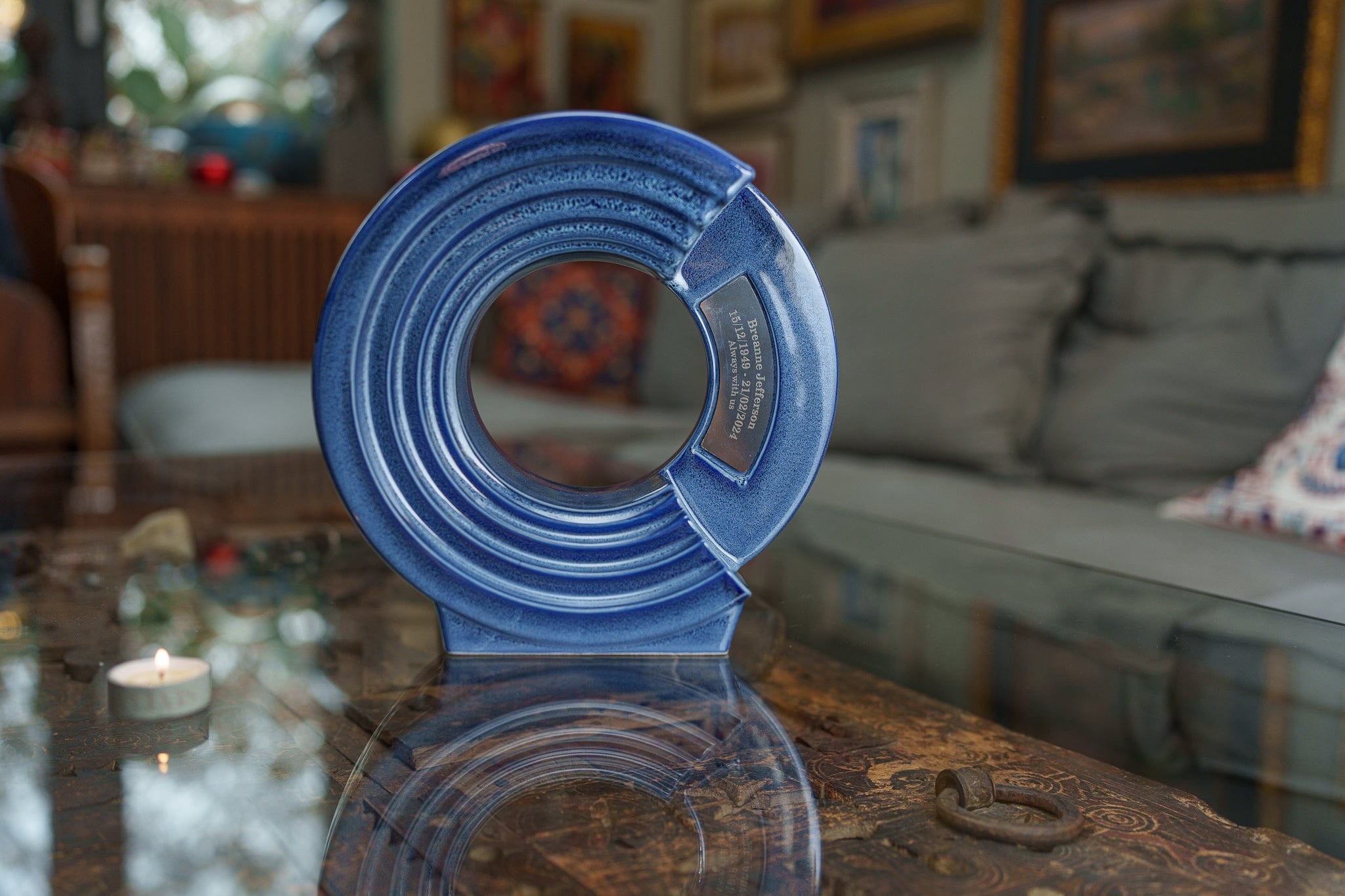Calma e contemplativa, l’Urna per Cremazione Solace in Blu Mélange riflette serenità e profondità. Realizzata a mano in Europa da Pulvis Art Urns, questa urna unisce delicati toni blu a una forma minimalista e moderna, rendendola adatta sia per memoriali interni che per spazi esterni.
