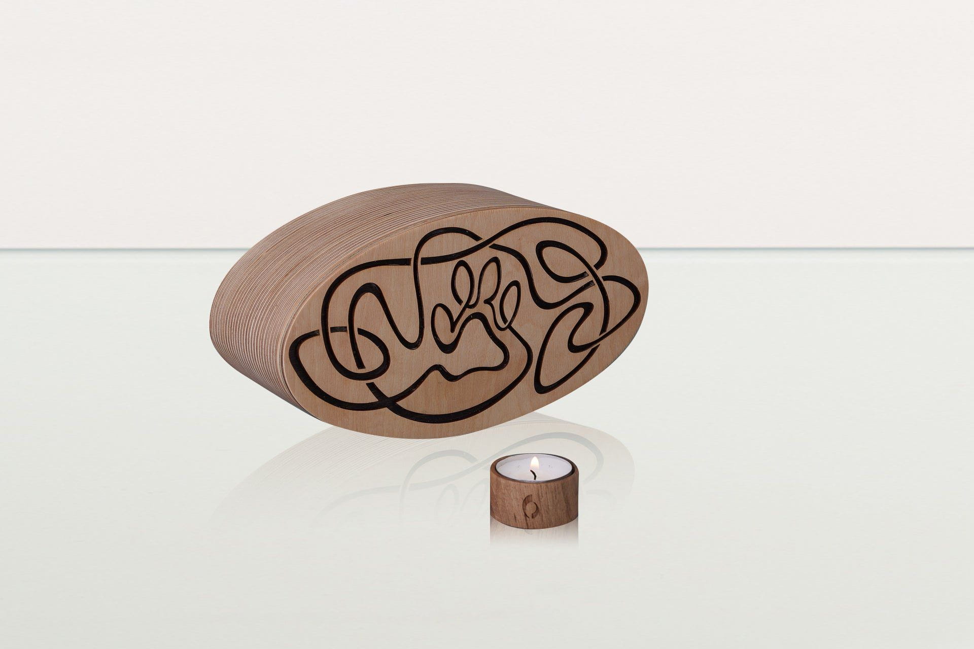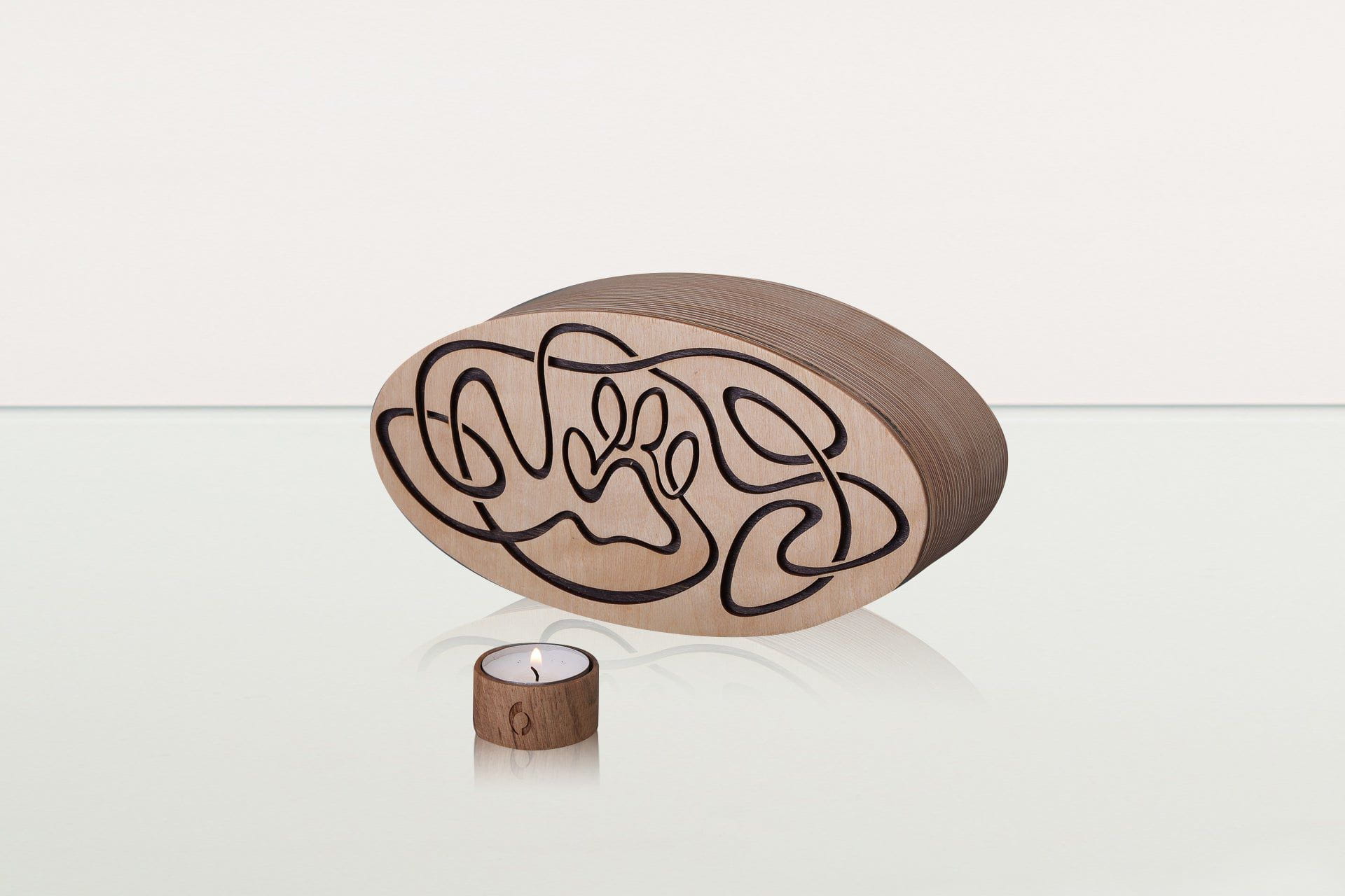Urna cineraria artigianale in legno per animali domestici, realizzata da Pulvis Art Urns.