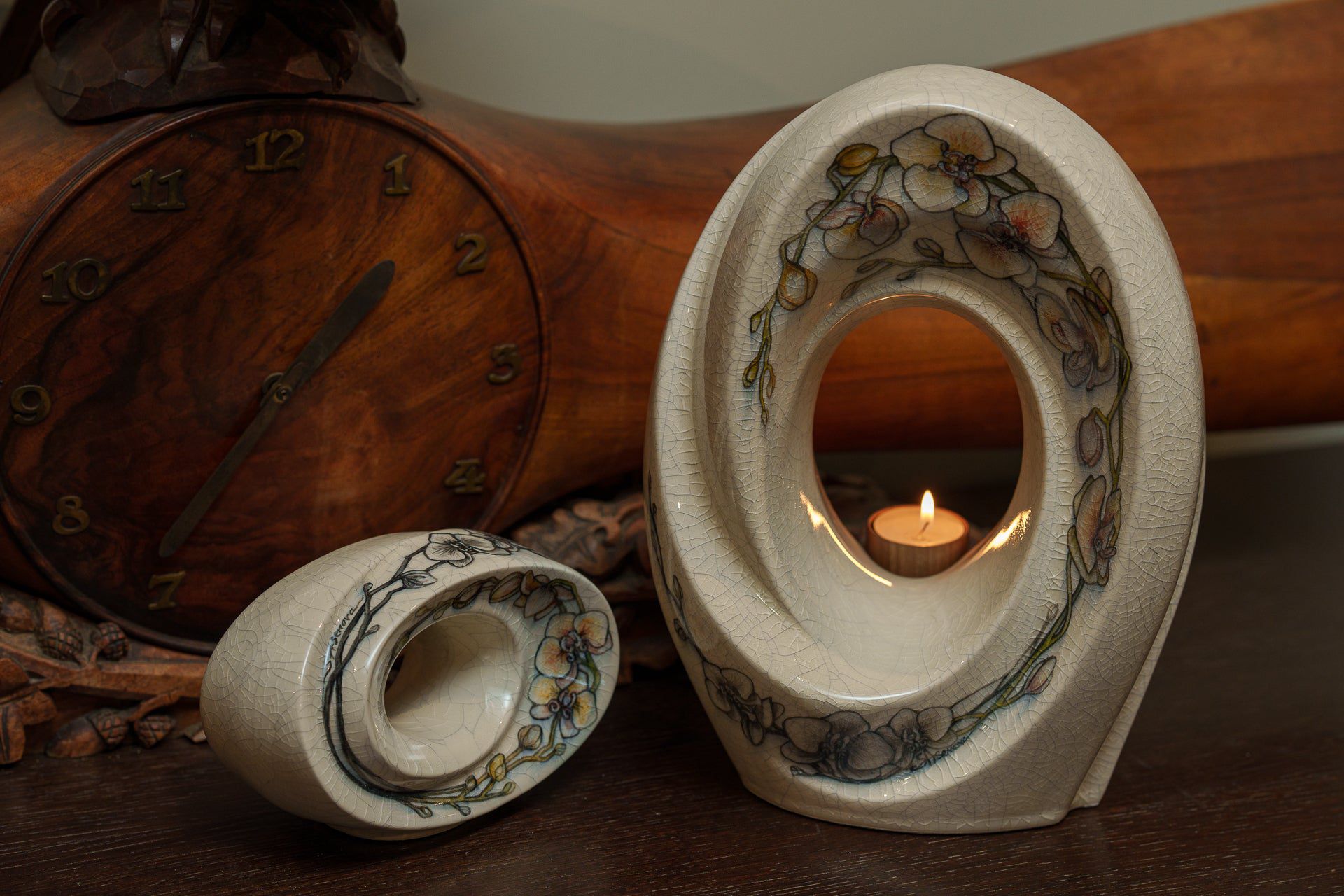 Urna decorata a mano “Il Passaggio – Orchidee” – Urna grande | In ceramica
