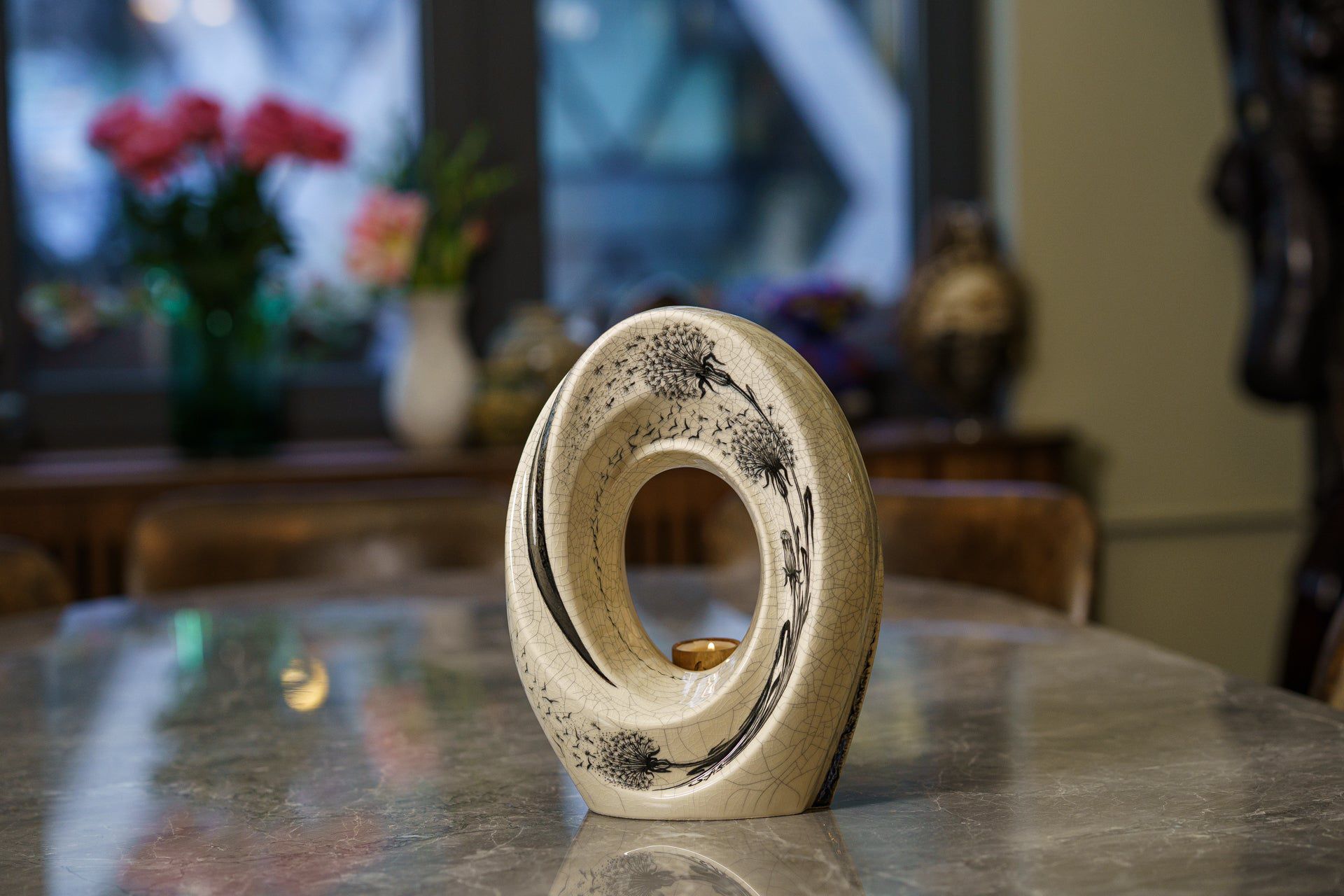 With its elegant lines and deep symbolism this ceramic memorial urn for ashes, named “The Passage”, is nothing short of a masterpiece.