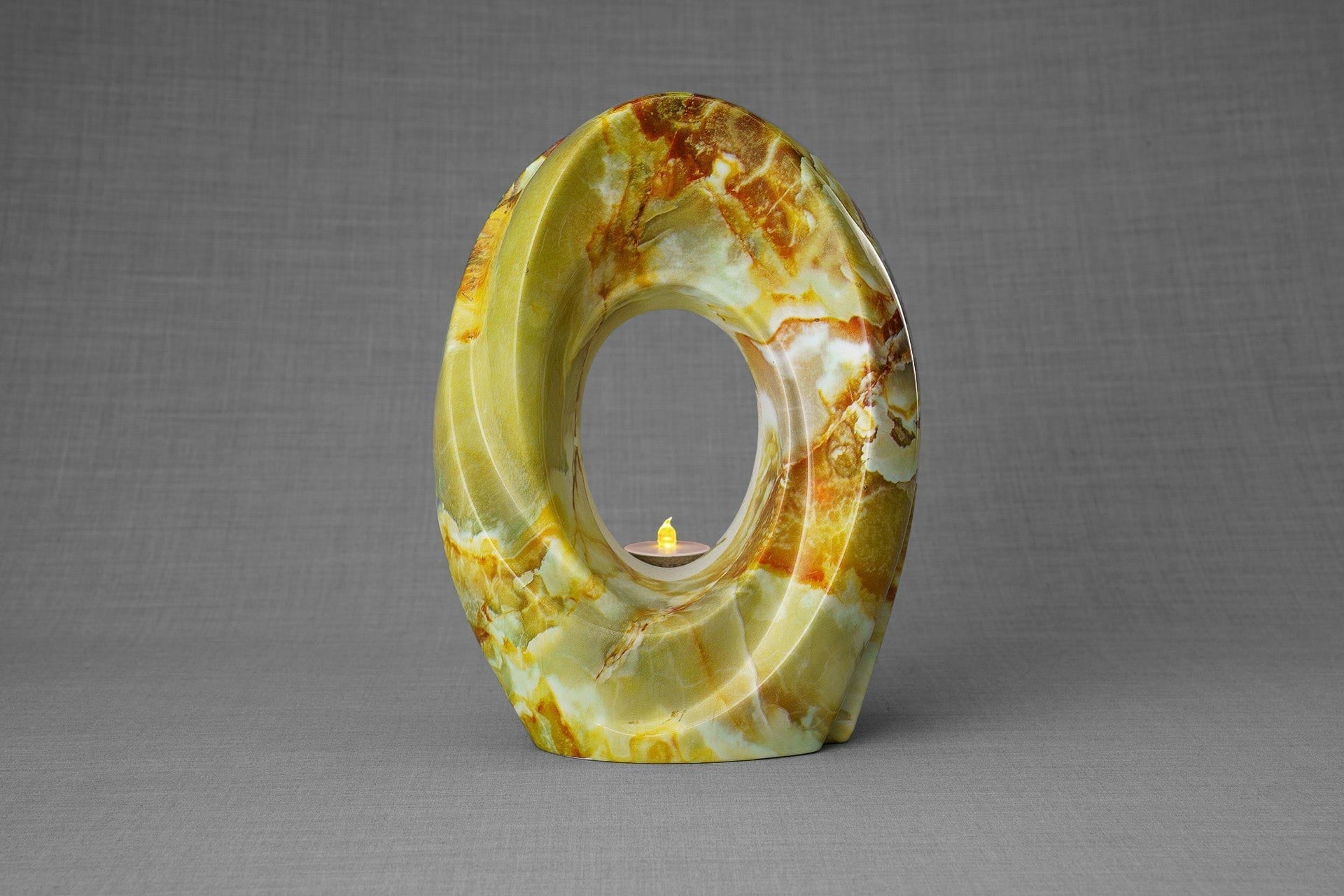 "The Passage - Onyx" features a thoughtful addition—a place for a tealight candle. This subtle detail adds a touch of warmth and solace, creating a serene ambiance for remembrance and reflection.