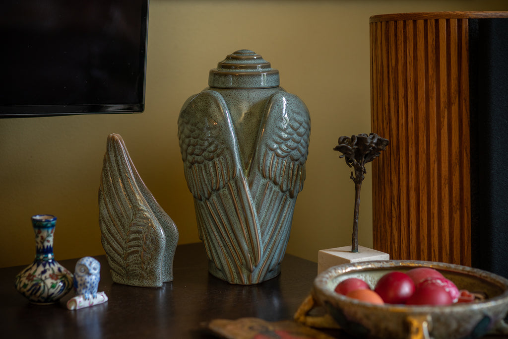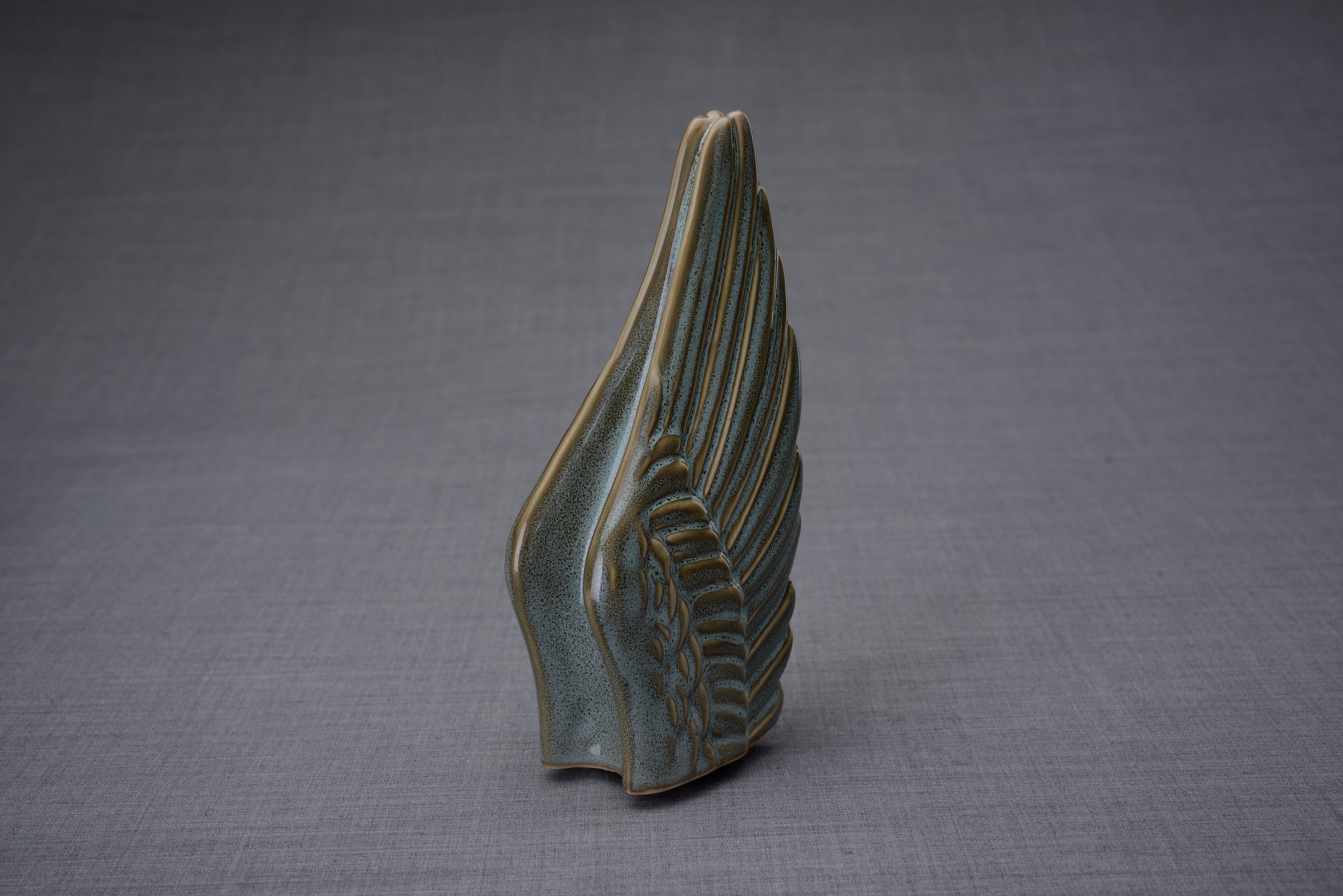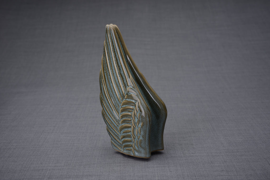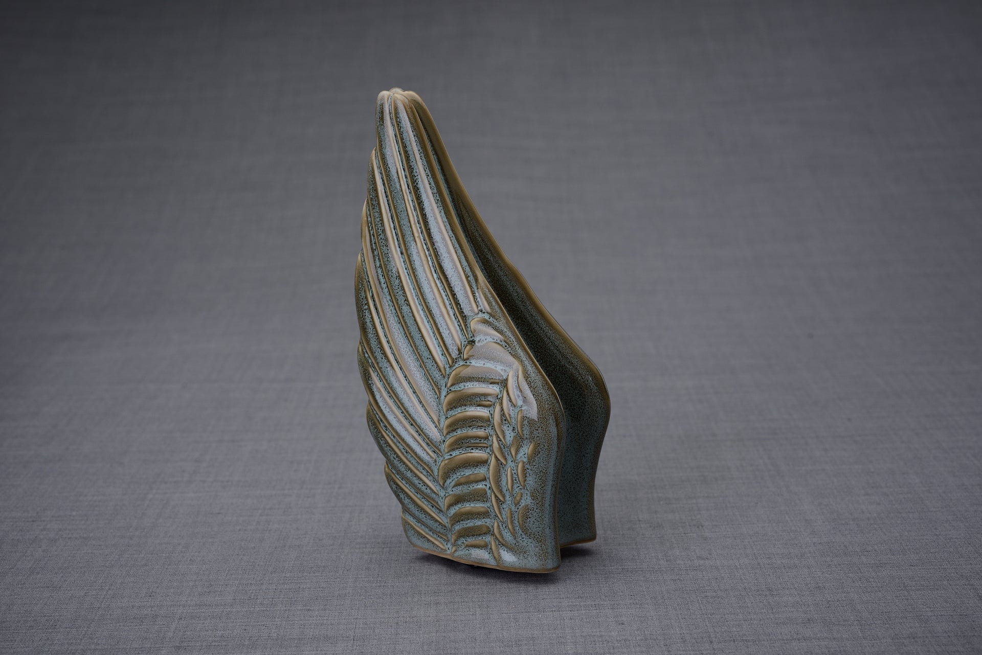 Il ricordo Wings più piccolo ospita le ceneri della persona amata nell'amore e nella protezione senza fine simboleggiati dalle ali d'angelo. Che tu voglia un ricordo da abbinare a un'urna Pulvis più grande o condividere le ceneri della cremazione con altri, queste ceramiche sono un'opera d'arte che può fungere da sottile memoriale per coloro che hanno significato così tanto.