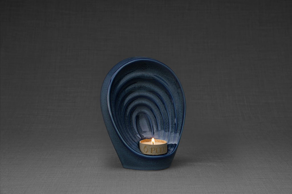 Questa urna in ceramica è disponibile in una tonalità blu intenso, che rappresenta guarigione, pace e rinascita, mentre il motivo mélange evidenzia il viaggio sfumato ma meraviglioso della vita, un memoriale significativo per la persona cara dopo la cremazione.