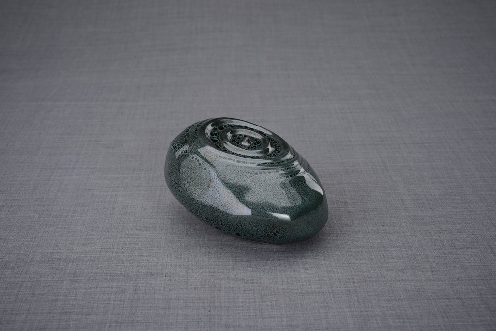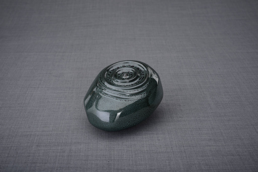 Il ricordo Resonance più piccolo riflette lo stesso design ponderato dell'urna in ceramica più grande, che rappresenta la natura eterna della vita. Questa opera d'arte meditativa può stare nel palmo della tua mano o essere utilizzata per condividere le ceneri della persona cara con gli altri.