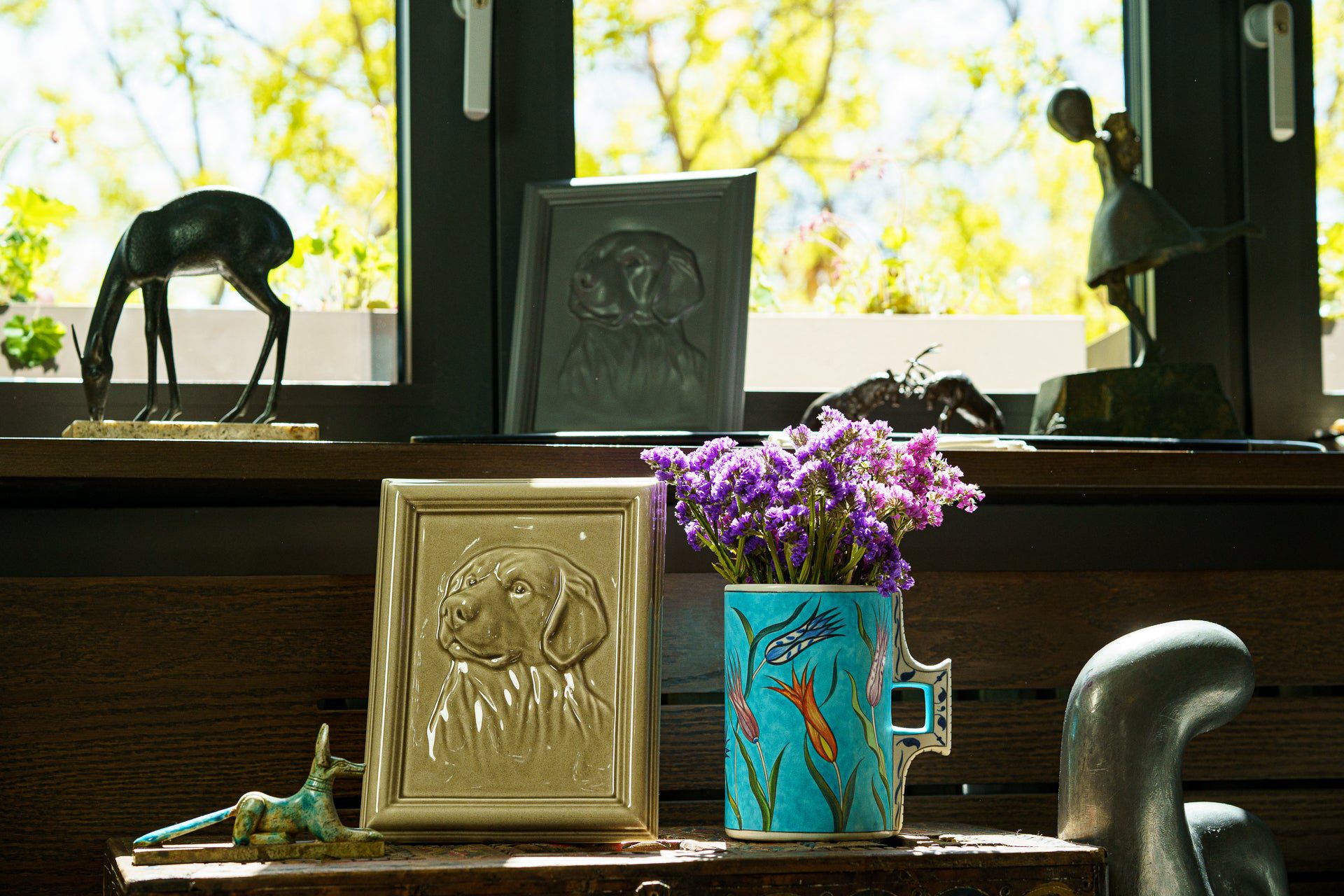 Urna crematoria artigianale in ceramica per le ceneri di cani Labrador, adatta per la casa o il giardino. Si tratta di un’urna commemorativa per animali domestici.